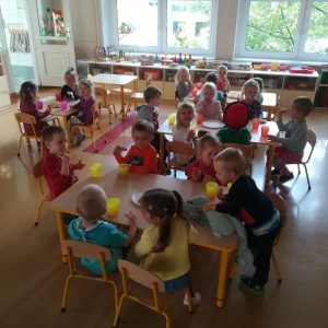Dzień Przedszkolaka rozpoczęliśmy zabawami ruchowymi i tańcami na auli przedszkola, by zakończyć go pysznym poczęstunkiem w sali :)