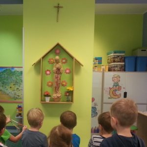 Nasza grupa codziennie modli się na różańcu, śpiewamy piosenki Maryjne, bierzemy figurkę Matki Bożej do domu aby wspólnie z rodzicami wielbić Maryję