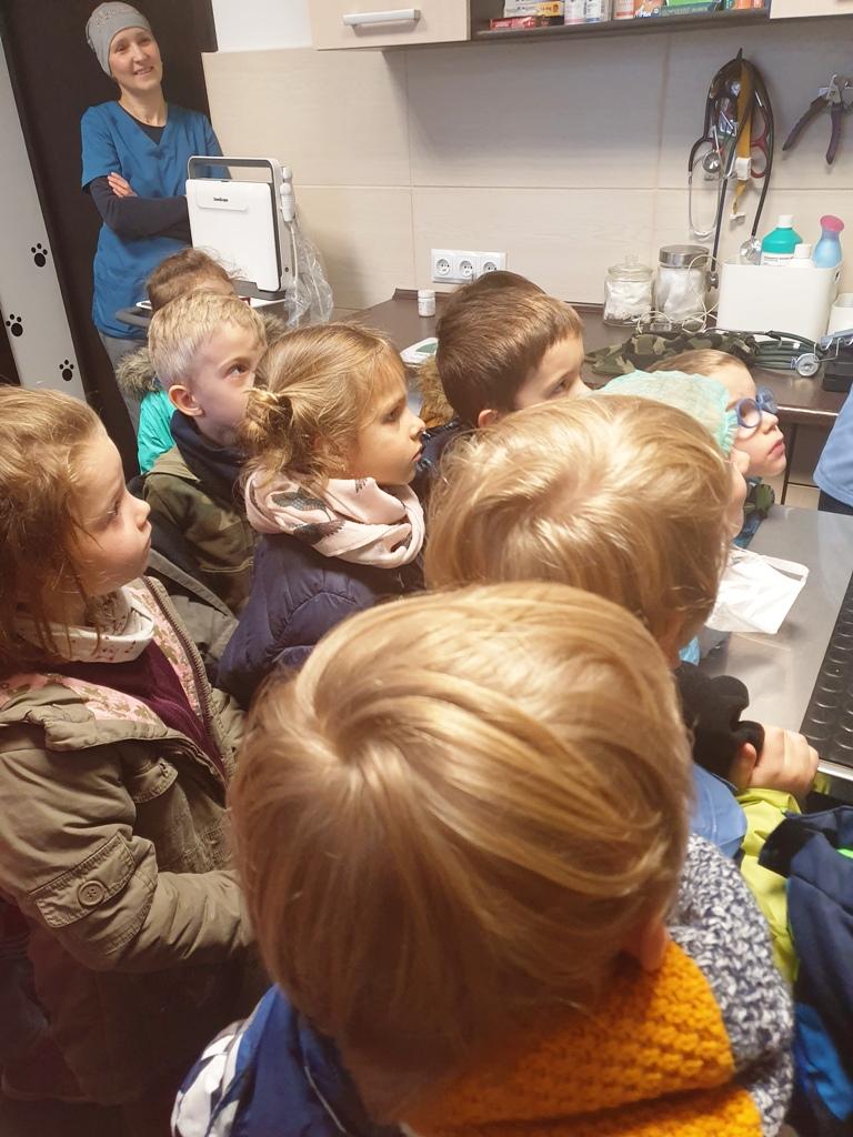 W dniu 13 listopada grupa turkusowa 5-latków udała się do pobliskiej kliniki weterynarii, aby poznać pracę weterynarza. Dzieci dowiedziały się kim jest weterynarz, jakie narzędzia potrzebne są lekarzowi, aby pomóc zwierzętom oraz w jaki sposób należy opiekować się swoimi pupilami.
