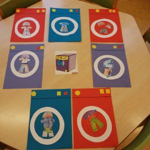 Dzieci z grupy Niebieskiej w ramach Kółka plastycznego wykonały pracę pt. „Pralka”. Pięknie pokolorowane ubrania musiały zostać dokładnie wyprane 🙂 🙂