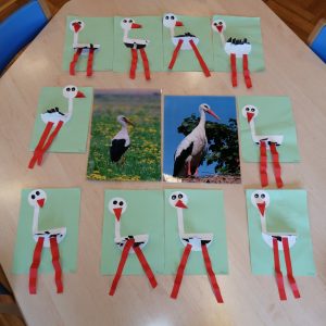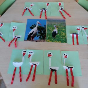 Czy to zima czy już wiosna? Dzieci z grupy Zielonej próbowały odpowiedzieć na to pytanie. Z pomocą przybył uroczy bocian, który odwiedził przedszkolaki na kółku plastycznym ?