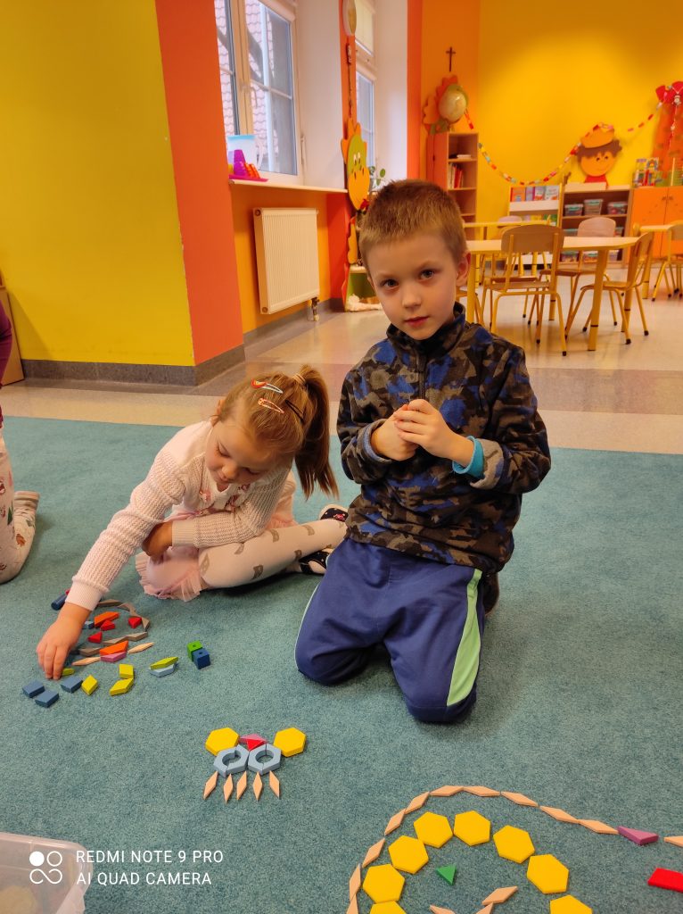 Rozwijanie kompetencji matematycznych poprzez zabawę to u nas codzienność. Przedszkolaki z grupy turkusowej poprzez zabawę utrwalają nazwy figur geometrycznych, ich kolory, wielkość oraz tworzenie zbiorów. Dzięki samodzielnemu doświadczaniu dzieci coraz lepiej radzą sobie podczas zajęć matematycznych.