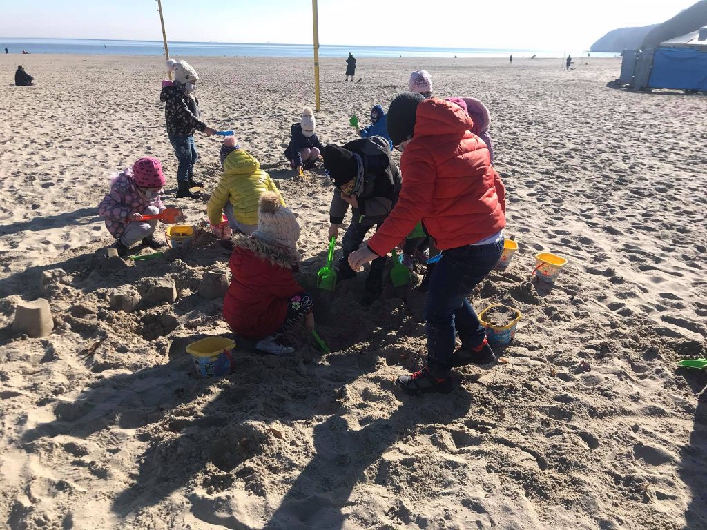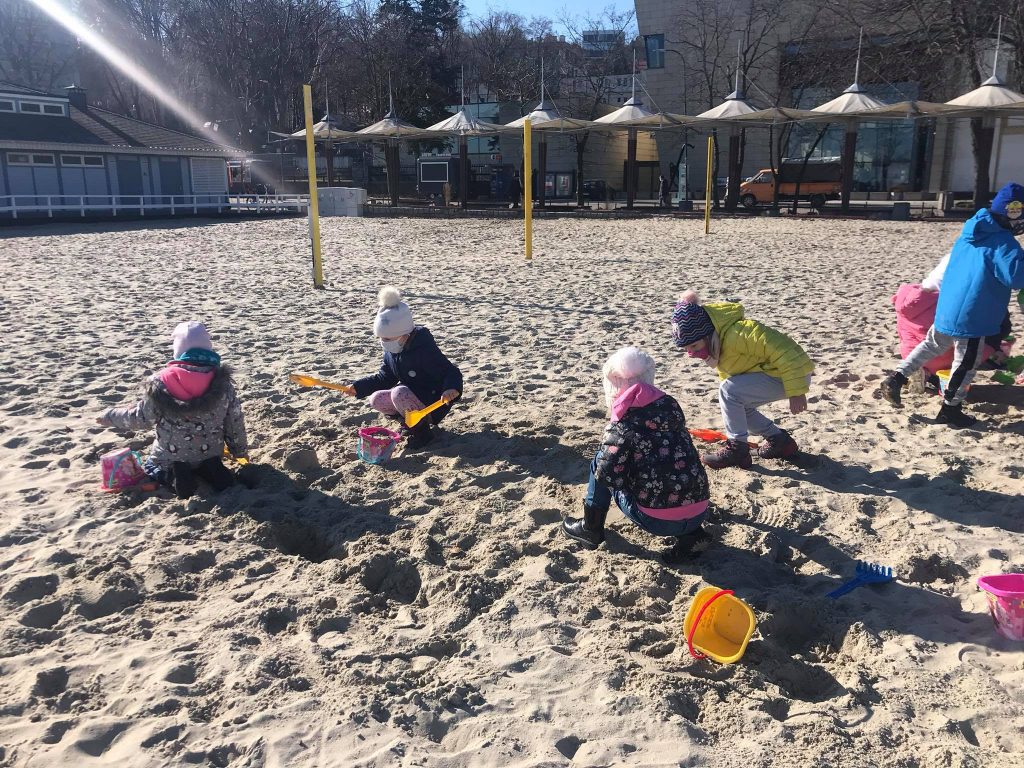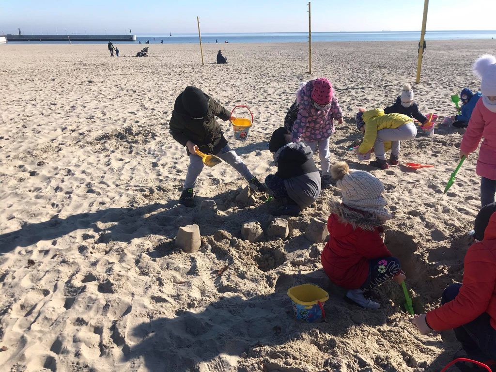 Ponieważ koniec lutego zaskoczył nas bardzo ciepłą temperaturą postanowiliśmy wybrać się na plażę. Dzieci były zachwycone z wspólnie spędzonego czasu podczas tworzenia zamków z piasku oraz bardzo ciepłej słonecznej pogody.