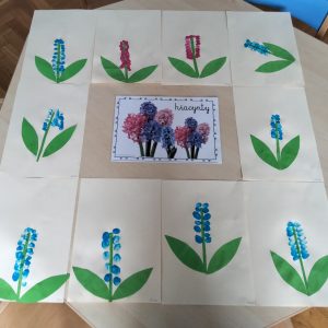 Bohaterem kolejnych zajęć na kółku plastycznym stał się wiosenny kwiat – Hiacynt. Dzieci z grupy Niebieskiej za pomocą paluszków i kolorowych farb stworzyły przepiękną pracę plastyczną ?
