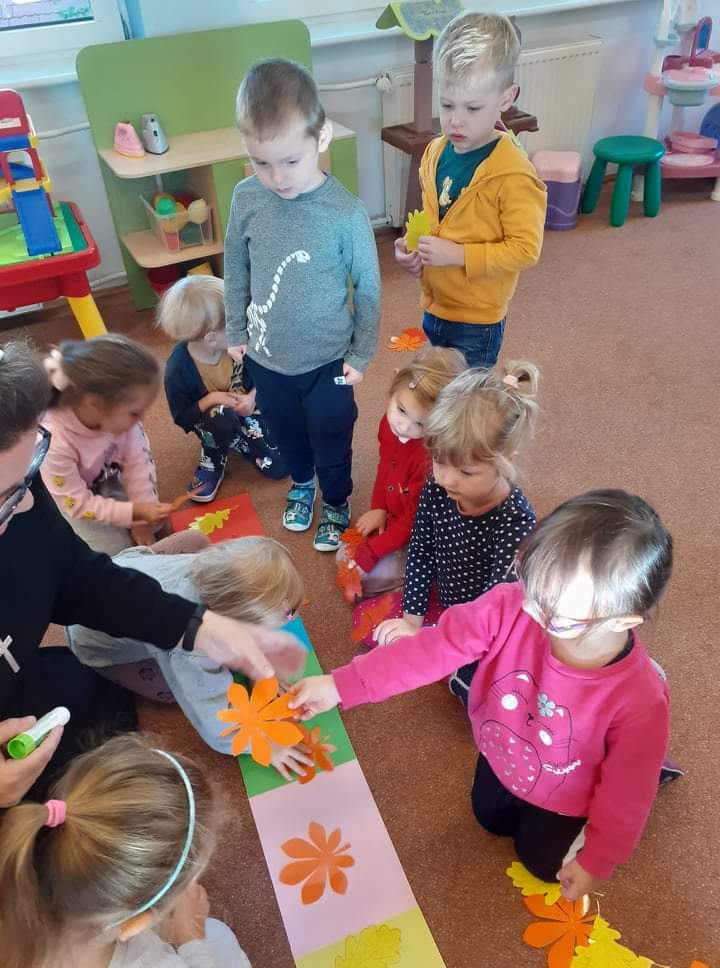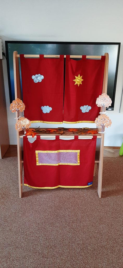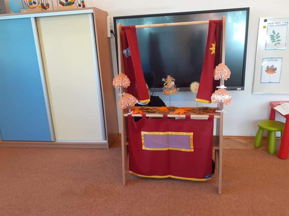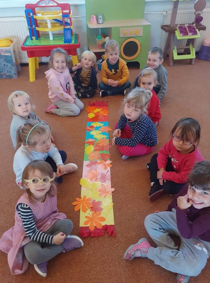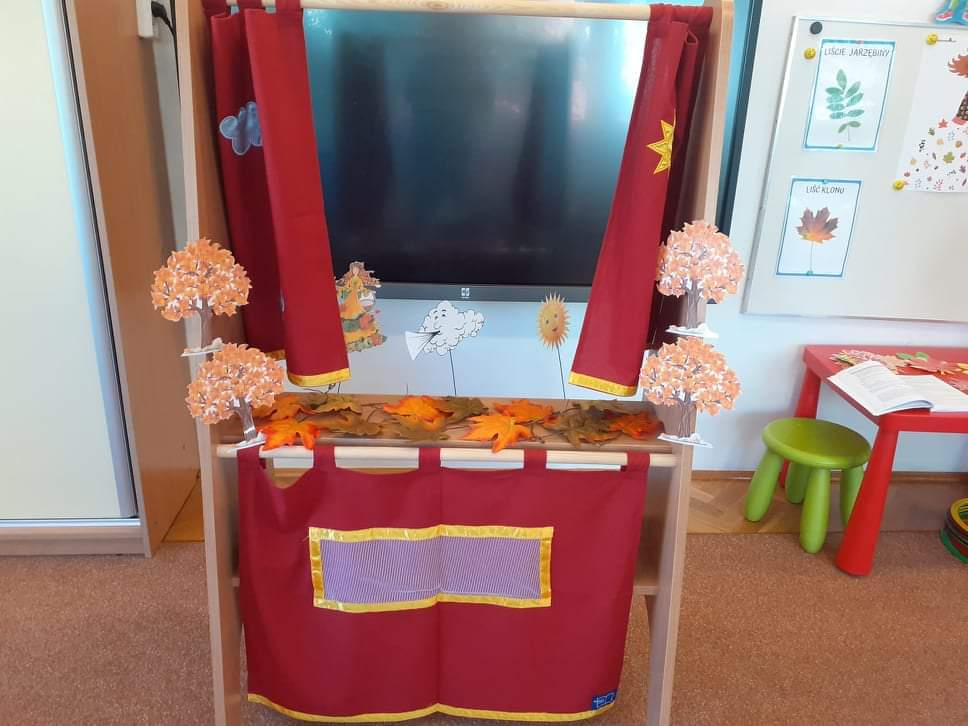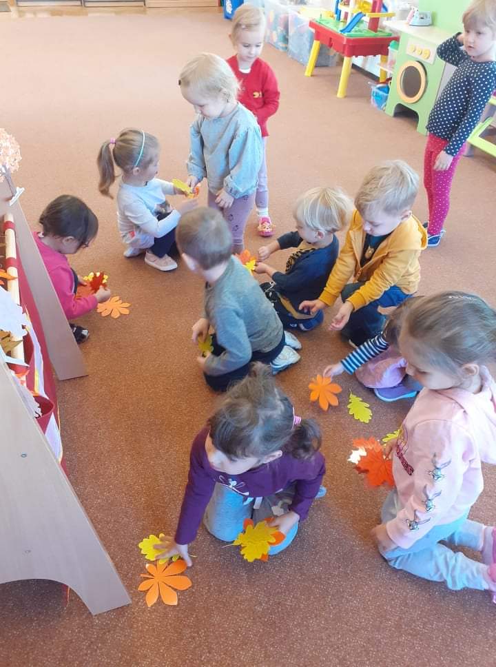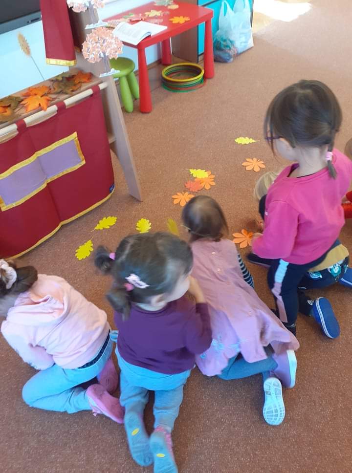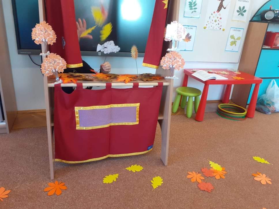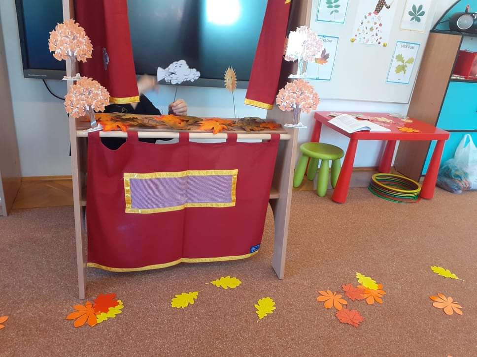AKTUALNOŚCI, GRUPA PASTELOWA Szal Pani Jesieni 24/09/2021 / Dzieci z grupy waniliowej miały okazję zobaczyć teatrzyk kukiełkowy na podstawie utworu T. Fiutowskiej „Chciałabym mieć szal”. Po teatrzyku wspólnie wykonały szal dla Pani Jesieni.