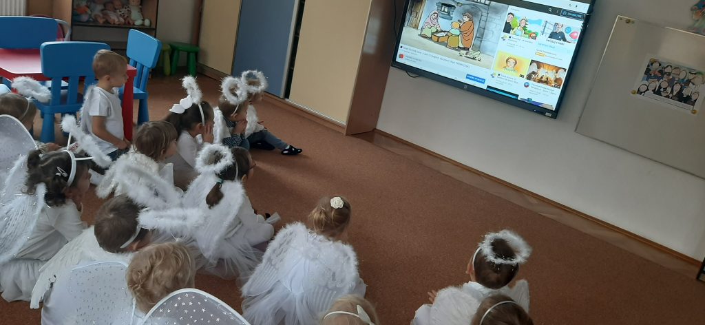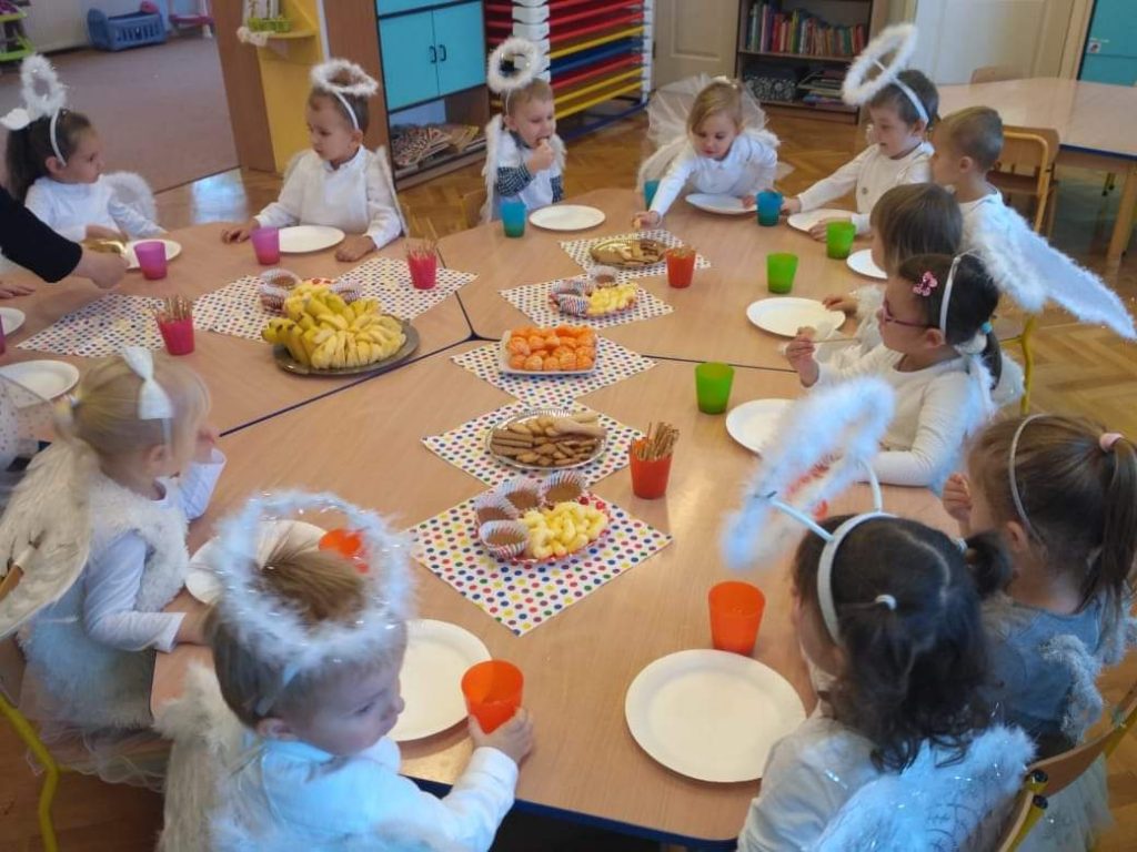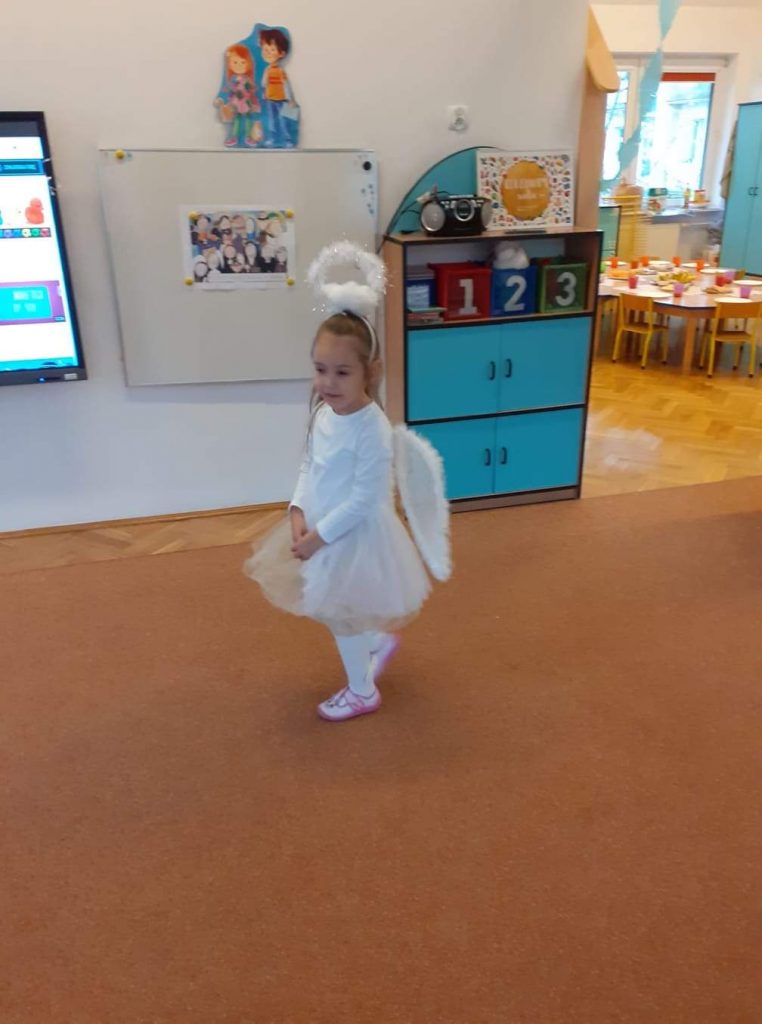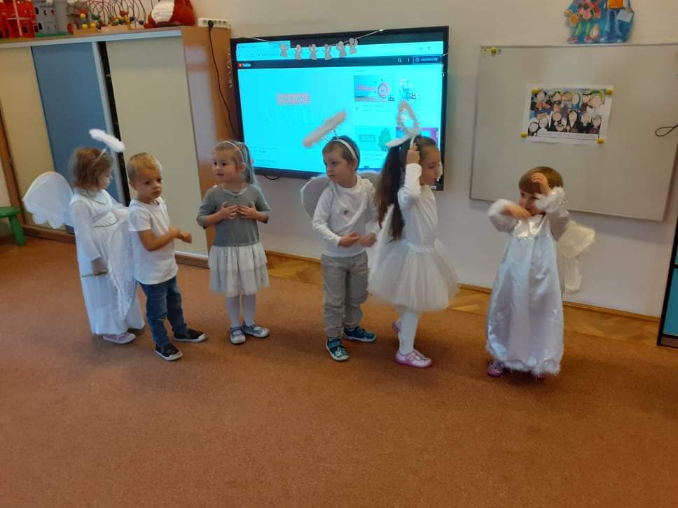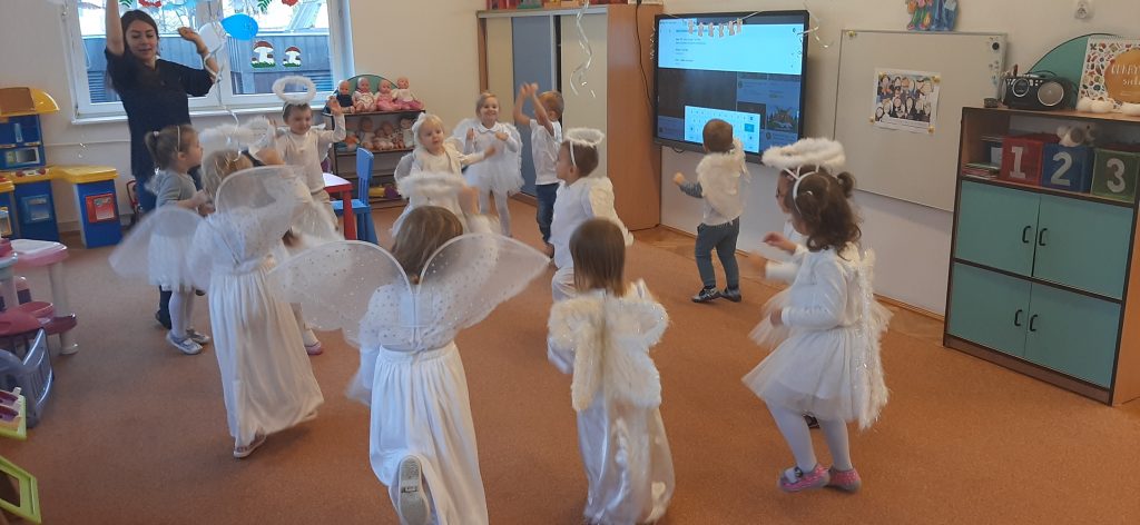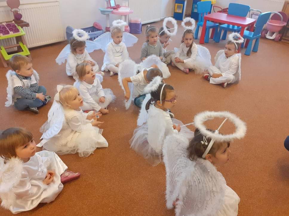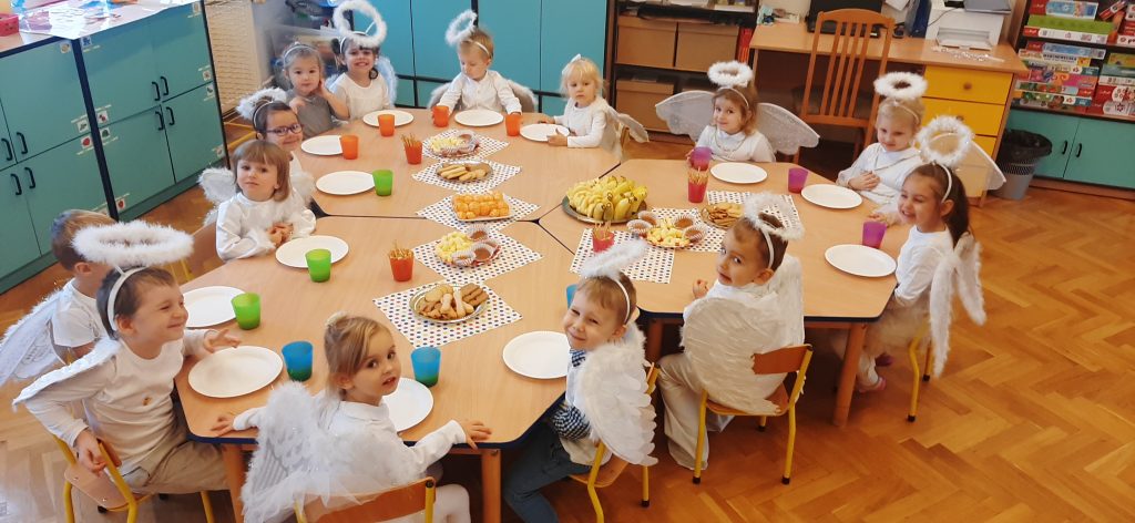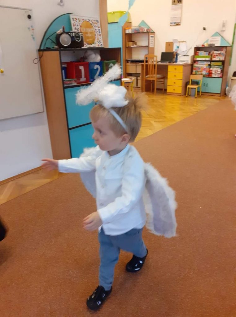 AKTUALNOŚCI, GRUPA PASTELOWA Bal Wszystkich Świętych 28/10/2021 / Z okazji zbliżającego się święta Wszystkich Świętych w grupie pastelowej odbył się bal. Na świętowanie przybyło mnóstwo Aniołków. Nasza sala na chwilę zamieniła się w niebo ;). Był również czas na wspólne zabawy, tańce oraz poczęstunek.