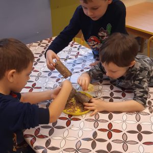 Zbliżają się bardzo chłodne dni, tak więc nasza grupa postanowiła zrobić stołówkę dla ptaków:) Posmarowaliśmy rolki tłuszczem, oblepiliśmy pysznymi ziarenkami i przyczepiliśmy sznureczek jako zawieszkę. Dzieci z radością zadeklarowały, że takie jadalnie dla…