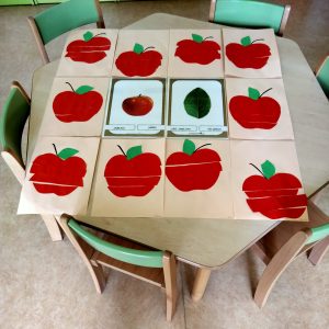 Za pomocą wyjątkowych i niecodziennych puzzli dzieci wykonały soczyste jabłko. Przedszkolaki wykazały się ogromną cierpliwością 😉