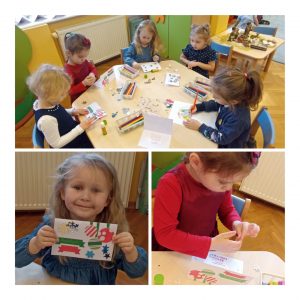 Przed Świętami Bożego Narodzenia szykujemy drobne upominki dla swoich ukochanych Rodzin – ozdabiamy szyszki i tworzymy kartki świąteczne.