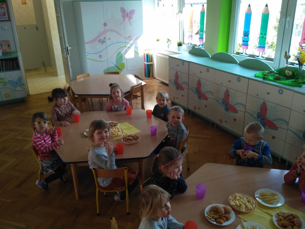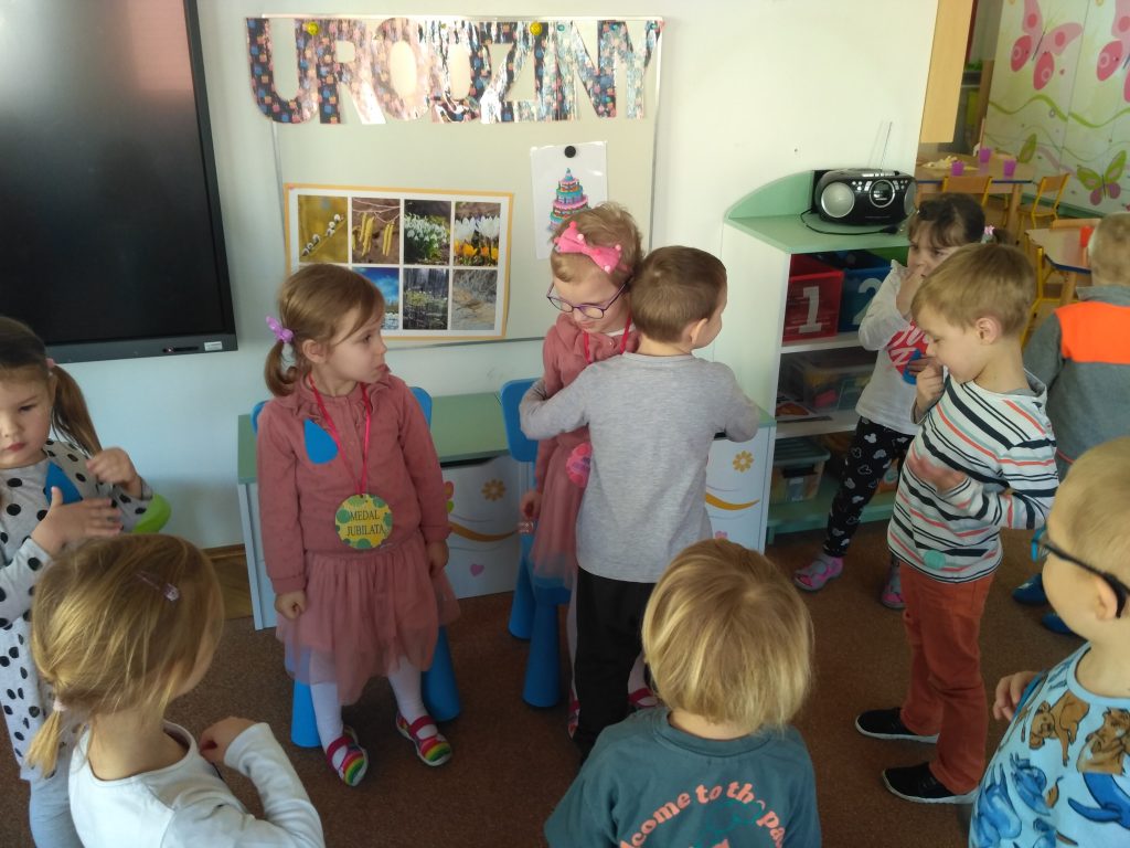 AKTUALNOŚCI, GRUPA PASTELOWA Urodzinki w grupie pastelowej 14/04/2022 / W ostatnim czasie w naszej grupie kilkoro dzieci świętowało swoje 4-te urodzinki: Piotruś, Julia, Oliwia, Julek i Alicja. Solenizantom tradycyjnie śpiewaliśmy sto lat, składaliśmy życzenia, a na koniec było małe co nie co 😉