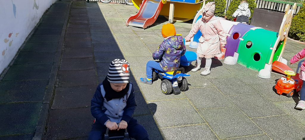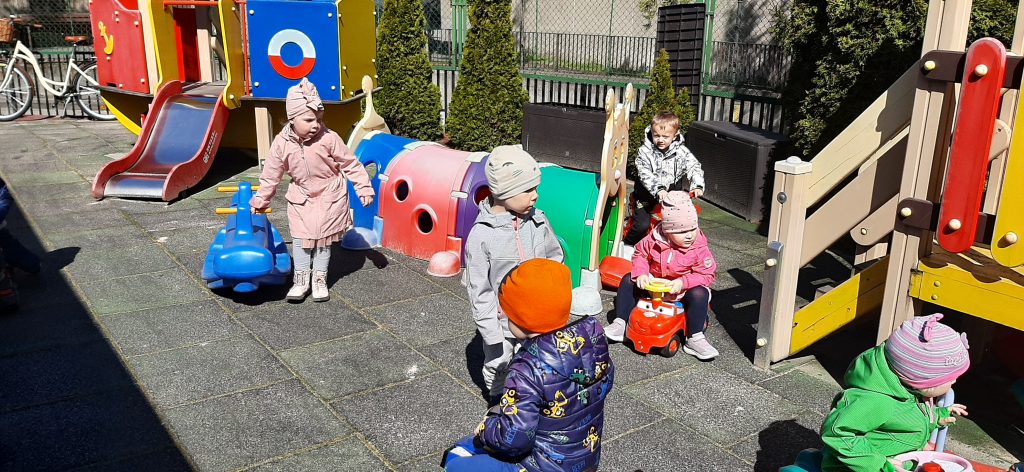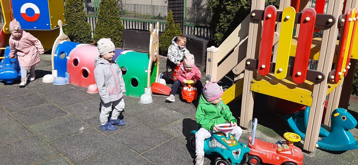 AKTUALNOŚCI, GRUPA PASTELOWA Na placu zabaw 06/05/2022 / Korzystając z pięknej pogody odwiedziliśmy przedszkolny plac zabaw. Czas nam minął na zabawie. Było bardzo radośnie.