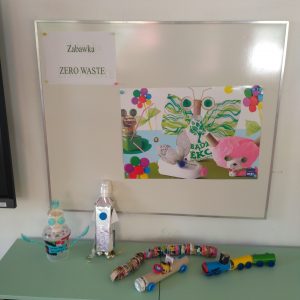 W ramach projektu przyrodniczego grupa 3 latków miała za zadanie stworzenie zabawki z produktów wtórnych. Dzieci dowiedziały się, że wcale nie trzeba kupować nowej zabawki a można stworzyć ją samemu. Butelki, pudełka, papiery…