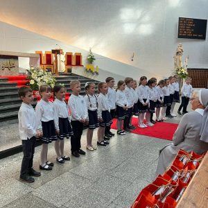 Po uroczystej Mszy Świętej, która odbyła się 14.06. 2022 w Parafii NMP obok naszego przedszkola dzieci, które kończą zerówkę otrzymały z rąk wychowawców oraz s. Dyrektor pamiątkowe dyplomy oraz prezenty. Msza Św. była…