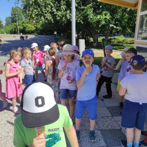 Czerwiec to najweselszy miesiąc roku dla wszystkich dzieci. Z niecierpliwością czekamy na upragnione wakacje! Z niektórymi przedszkolakami już się nie zobaczymy więc wybraliśmy się na pożegnalne lody. Pogoda dopisywała i trzeba było szukać…
