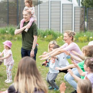 Piknikowej zabawy nadszedł czas. Z rodzicami spędzam czas.