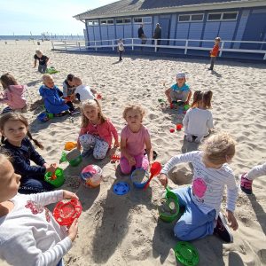 Pierwsze dni nowego roku szkolnego, ostatnie dni lata, grupa turkusowa wybrała na zabawę naszą piękną gdyńską plażę. Słoneczko sprzyjało ostatnim w tym sezonie zabawom w piasku, budowaniu babek, wznoszeniu budowli z piasku, poszukiwaniu…