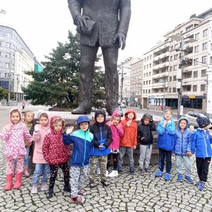 Udało nam się wykorzystać chwilę bez opadów deszczu i wybrać się na spacer. Pokonaliśmy drogę z przedszkola do Placu Kaszubskiego. Po drodze zwracaliśmy uwagę na budynki. Zatrzymywaliśmy się przed witrynami i odgadywaliśmy co…