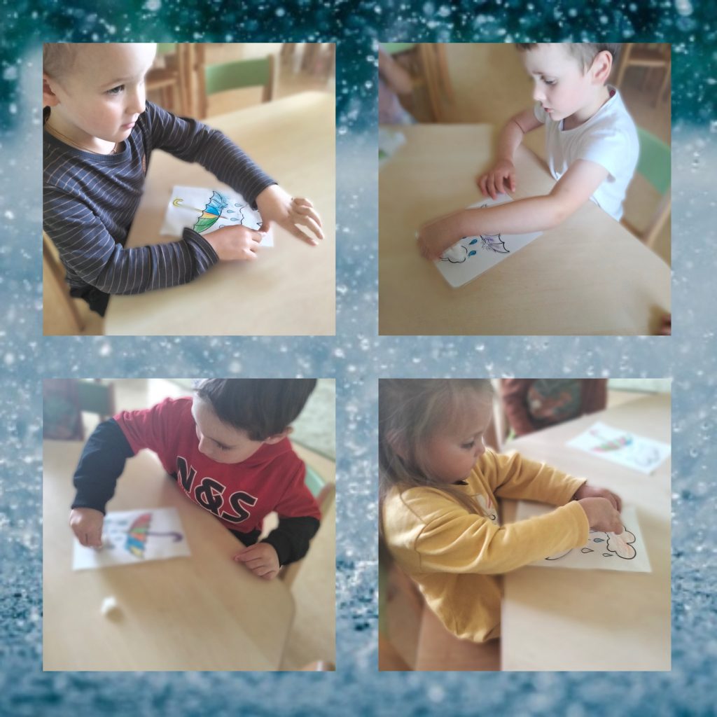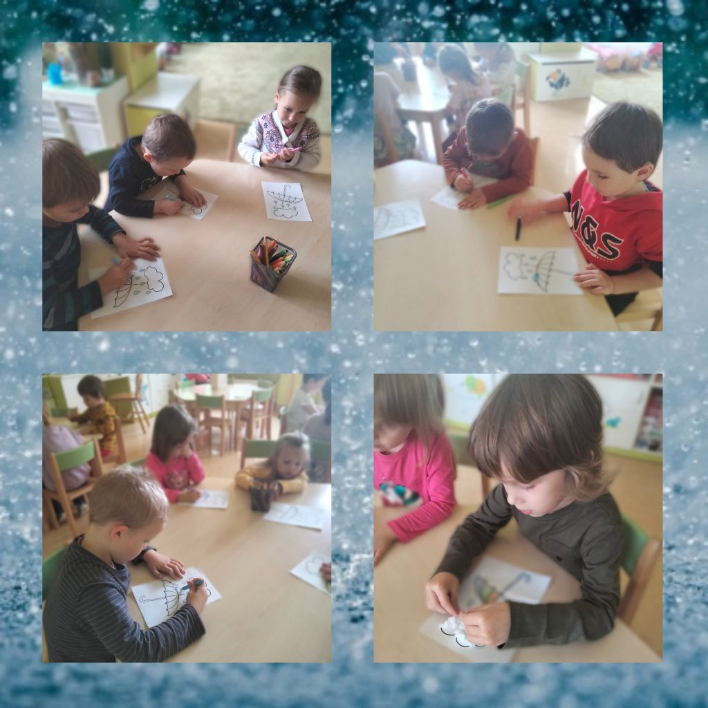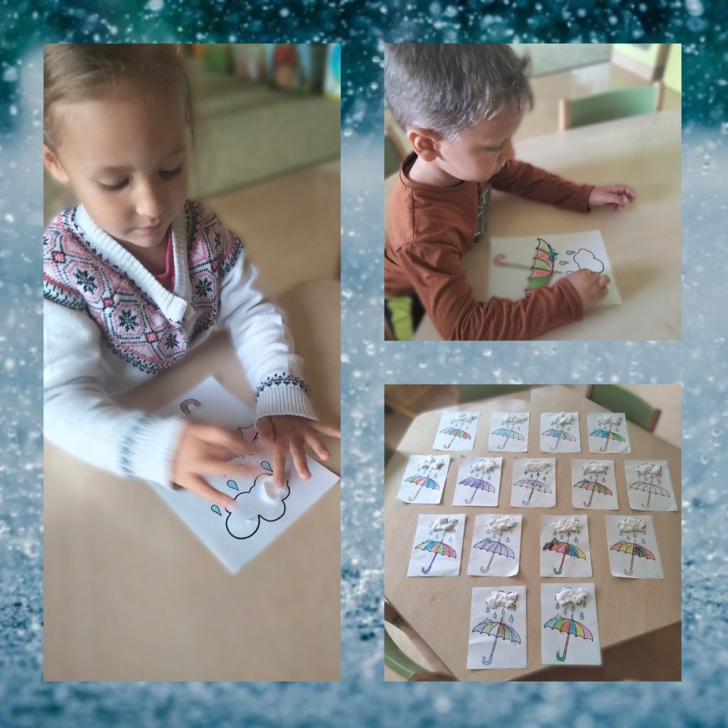 AKTUALNOŚCI, GRUPA ZIELONA Kolorowy parasol na deszcz – kółko plastyczne 22/09/2022 / Na pierwszych zajęciach kółka plastycznego dzieci wykonały piękne parasole za pomocą kolorowych kredek i waty.