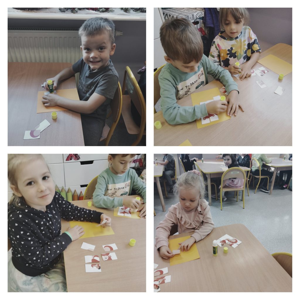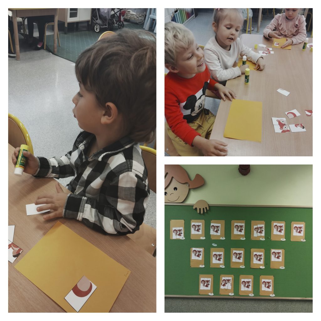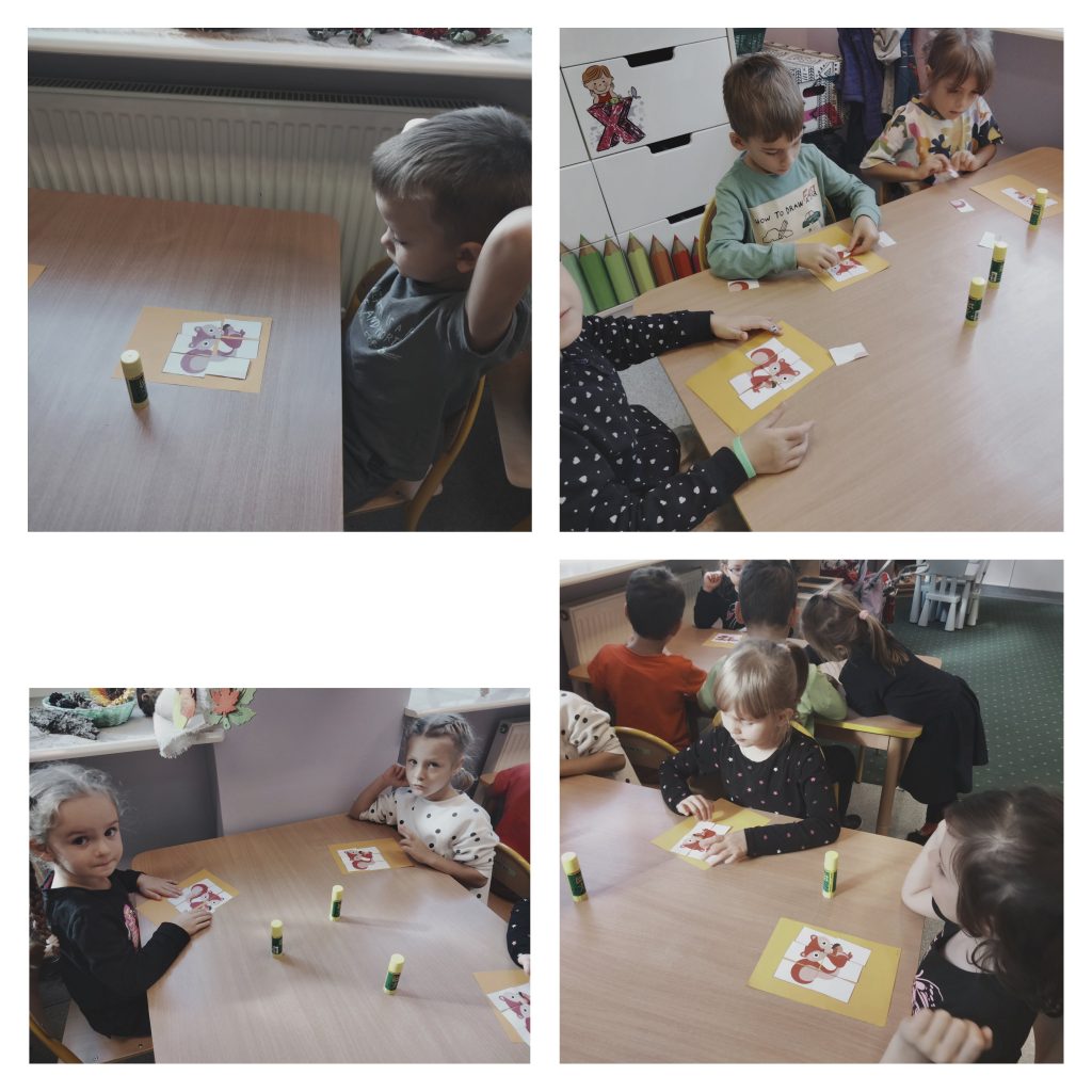 Dzieci postanowiły ułożyć puzzle z podobizną wiewiórki.