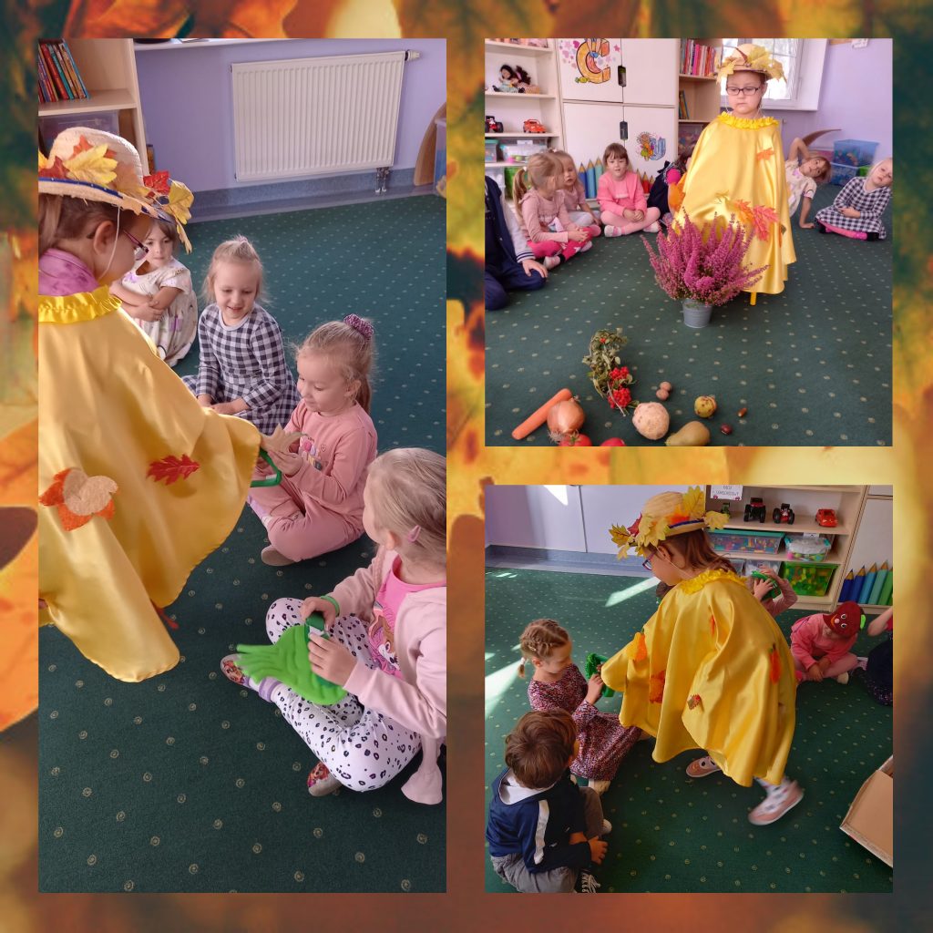 AKTUALNOŚCI, GRUPA LAWENDOWA Pierwszy dzień jesieni 26/09/2022 / Dzisiaj pierwszy dzień jesieni !!!Do naszej sali zapukała Pani Jesień , którą zaprosiliśmy do wspólnej zabawy.Pani Jesień podarowała dzieciom wspaniałe jesienne dary .