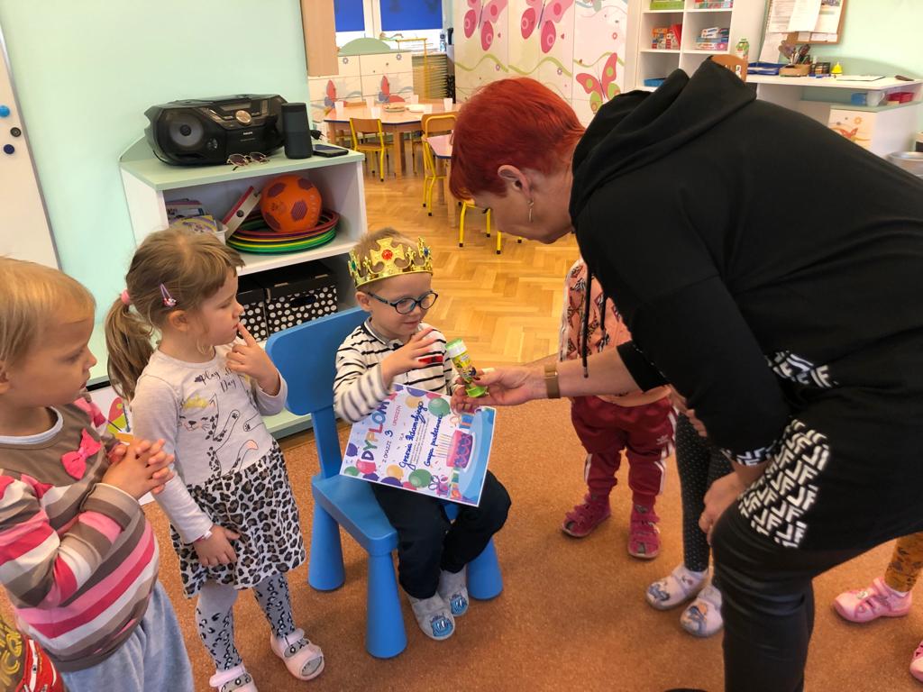 AKTUALNOŚCI, GRUPA PASTELOWA Październikowe urodzinki 24/10/2022 / Sto lat ! Sto lat ! Niech żyje, żyje nam ! A kto ? GRZESIU ! Tego dnia dzieci wspólnie składały piękne życzenia oraz zaśpiewały Sto Lat. Kochany Grzesiu życzymy Ci samych powodów do uśmiechu.