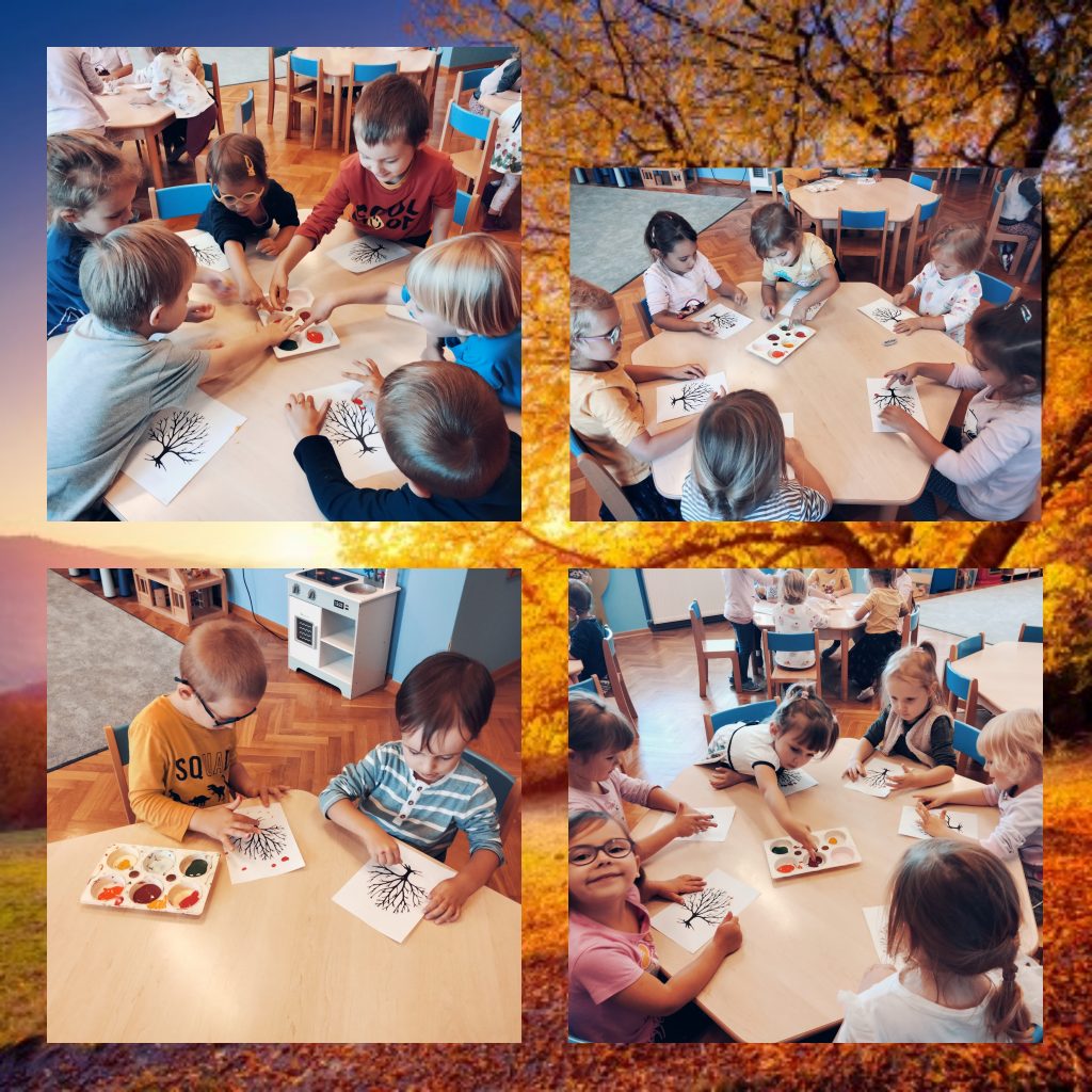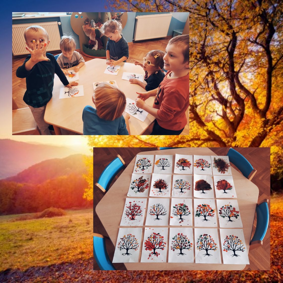 AKTUALNOŚCI, GRUPA NIEBIESKA Jesienne drzewo – kółko plastyczne 08/11/2022 / Na kółku plastycznym w grupie Niebieskiej powstały pięknie ozdobione jesienne drzewka. Przedszkolaki poradziły sobie doskonale z wykonaniem pracy plastycznej paluszkami i farbami .