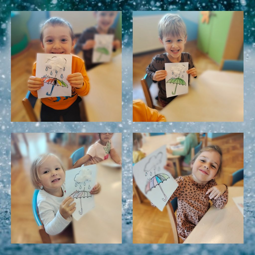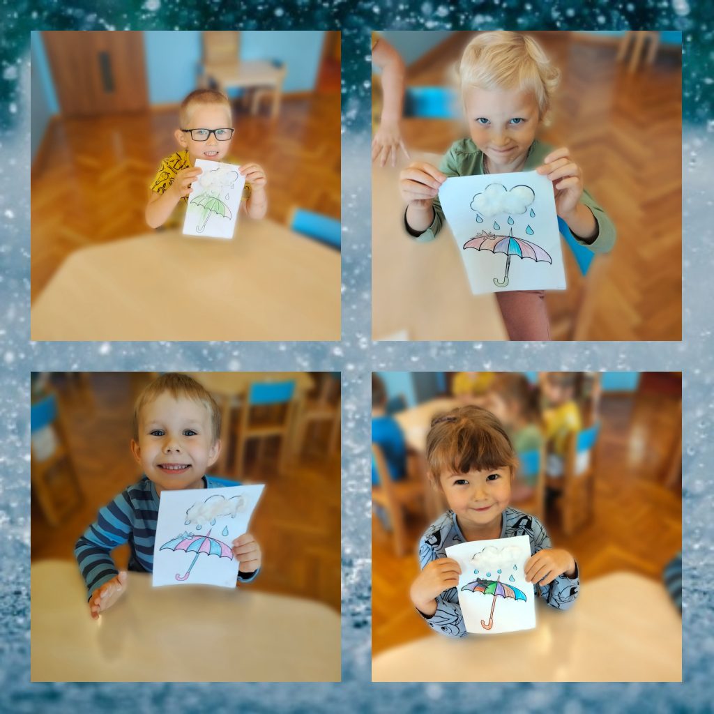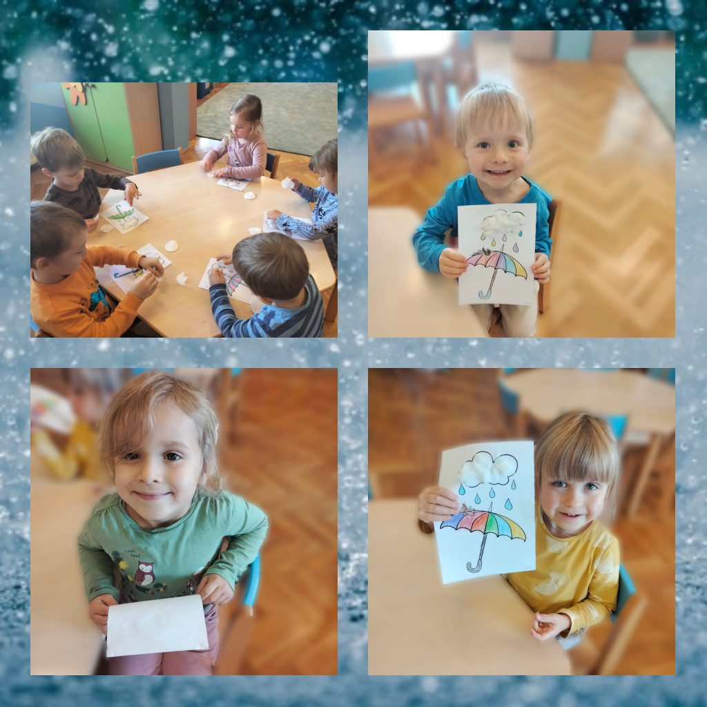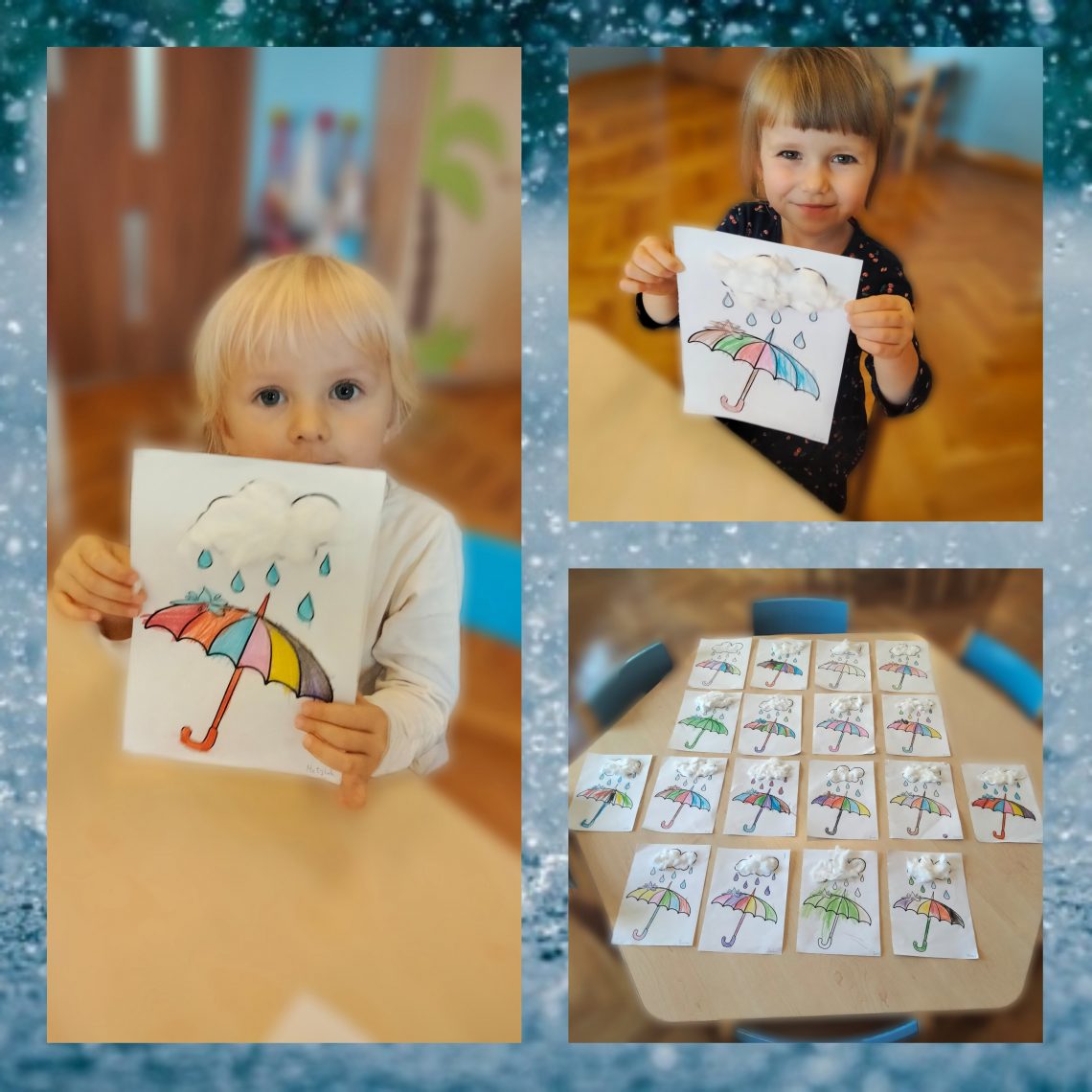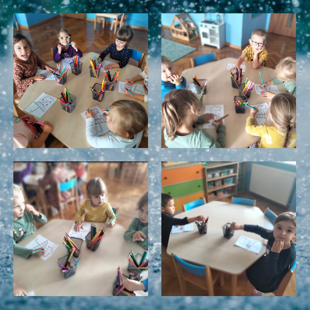 AKTUALNOŚCI, GRUPA NIEBIESKA Kolorowy parasol na deszcz – kółko plastyczne 08/11/2022 / Na zajęciach kółka plastycznego dzieci wykonały piękne parasole za pomocą kolorowych kredek i waty .