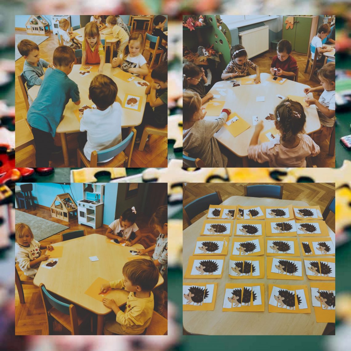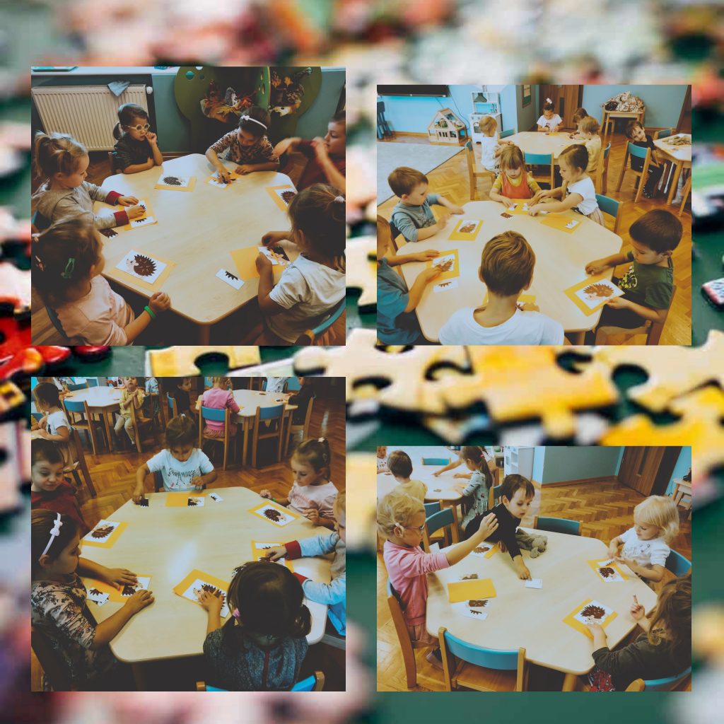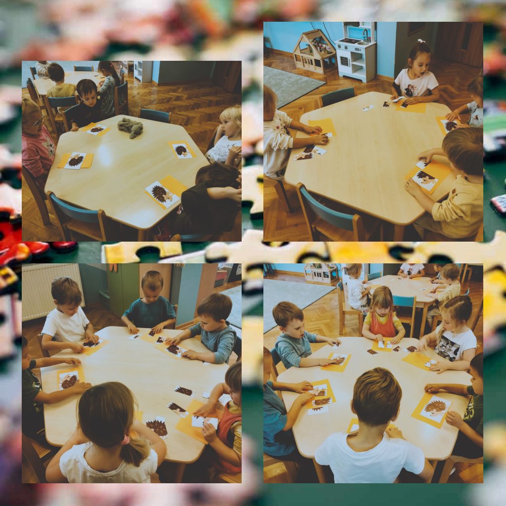 AKTUALNOŚCI, GRUPA NIEBIESKA Układamy jesienne puzzle – kółko plastyczne 08/11/2022 / Jeż o imieniu Igiełka powędrował na kolejne zajęcia plastyczne .Tym razem chciał sprawdzić czy dzieci z grupy Niebieskiej ułożą puzzle składające się z 4 elementów .Kolejne Przedszkolaki spisały się na medal.