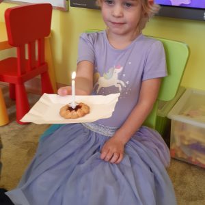 W tym roku będąc już w grupie zielonej, też pamiętamy o ważnym dla nasz dniu, a mianowicie o naszych urodzinach. W minionym czasie świętowaliśmy urodziny Alicji. Wspólnie zaśpiewaliśmy słynne „STO LAT”, złożyliśmy życzenia urodzinowe i…