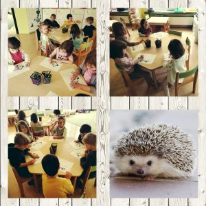 Dzieci bardzo polubiły jeżyka Igiełkę i zaprosiły go ponownie na zajęcia plastyczne. Przedszkolaki miały okazję wykorzystać plastikowy widelec moczony w farbie do wykonania tak wyjątkowej pracy plastycznej