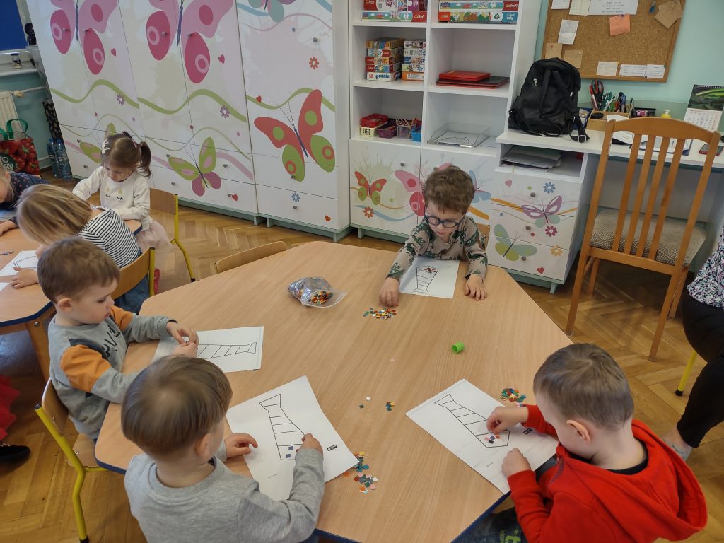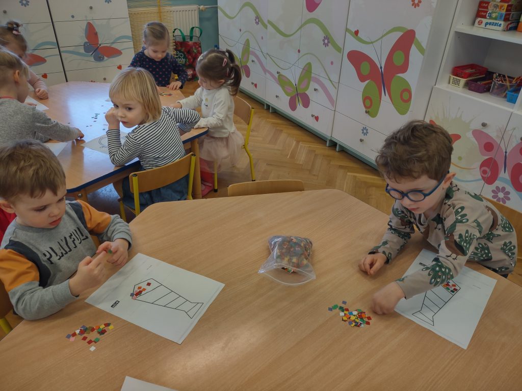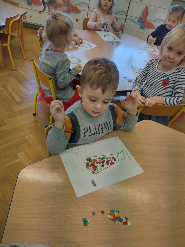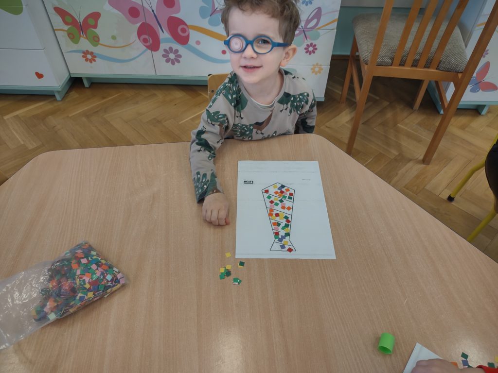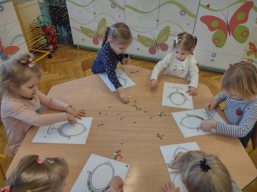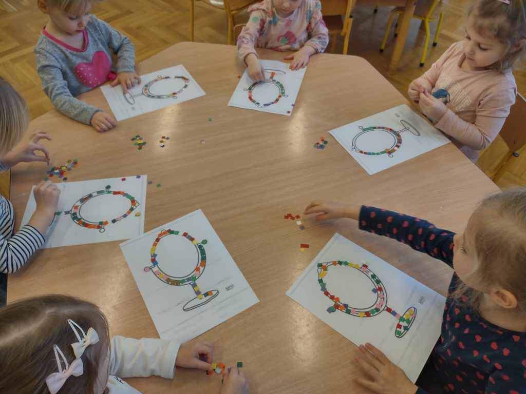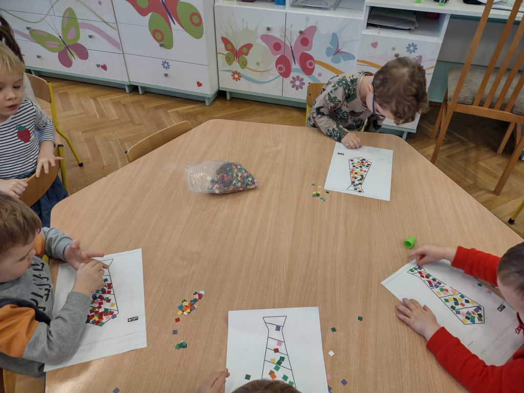 AKTUALNOŚCI, GRUPA PASTELOWA Laurka dla babci i dziadka 06/02/2023 / Ćwiczenie motoryki małej,doskonalenie koordynacji wzrokowo -ruchowej.Utrwalenie nazw kolorów oraz figury geometrycznej -kwadratu.Wykonanie lusterka dla babci i krawatu dla dziadka.