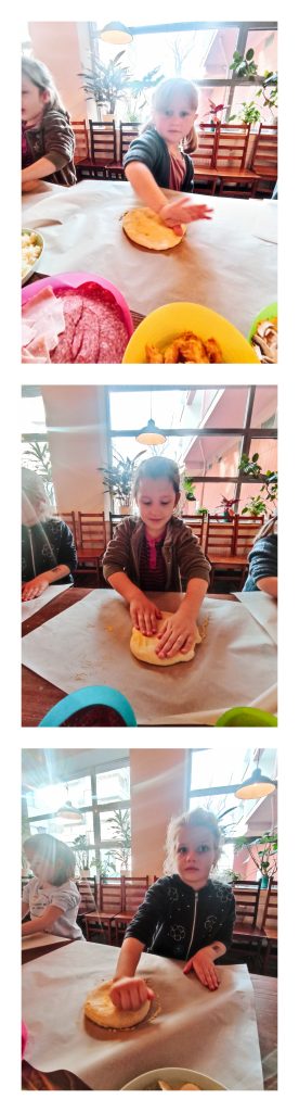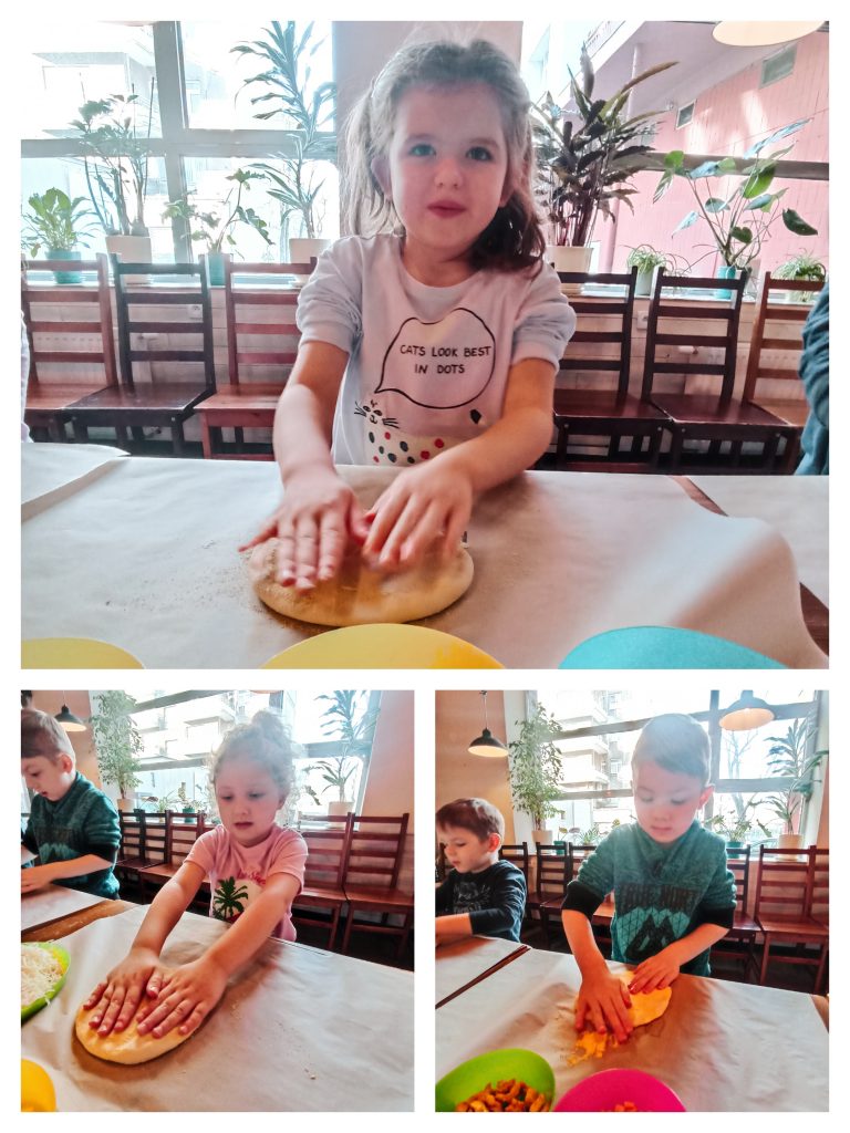 Przedszkolaki z grupy Turkusowej wybrały się do Bistro Szama na warsztaty kulinarne by uczcić Dzień Pizzy. Dzieci poznały historię  dania, które baaardzo lubimy jeść, składniki, które są ważne by powstała pyszna pizza, oraz samodzielnie wyrobiły ciasto i dobrały składniki i tak powstała ich własna pizza. To spotkanie było okazją do wczucia się w rolę pizzermana, niezwykłym doświadczeniem sensorycznym oraz pyszną zabawą.