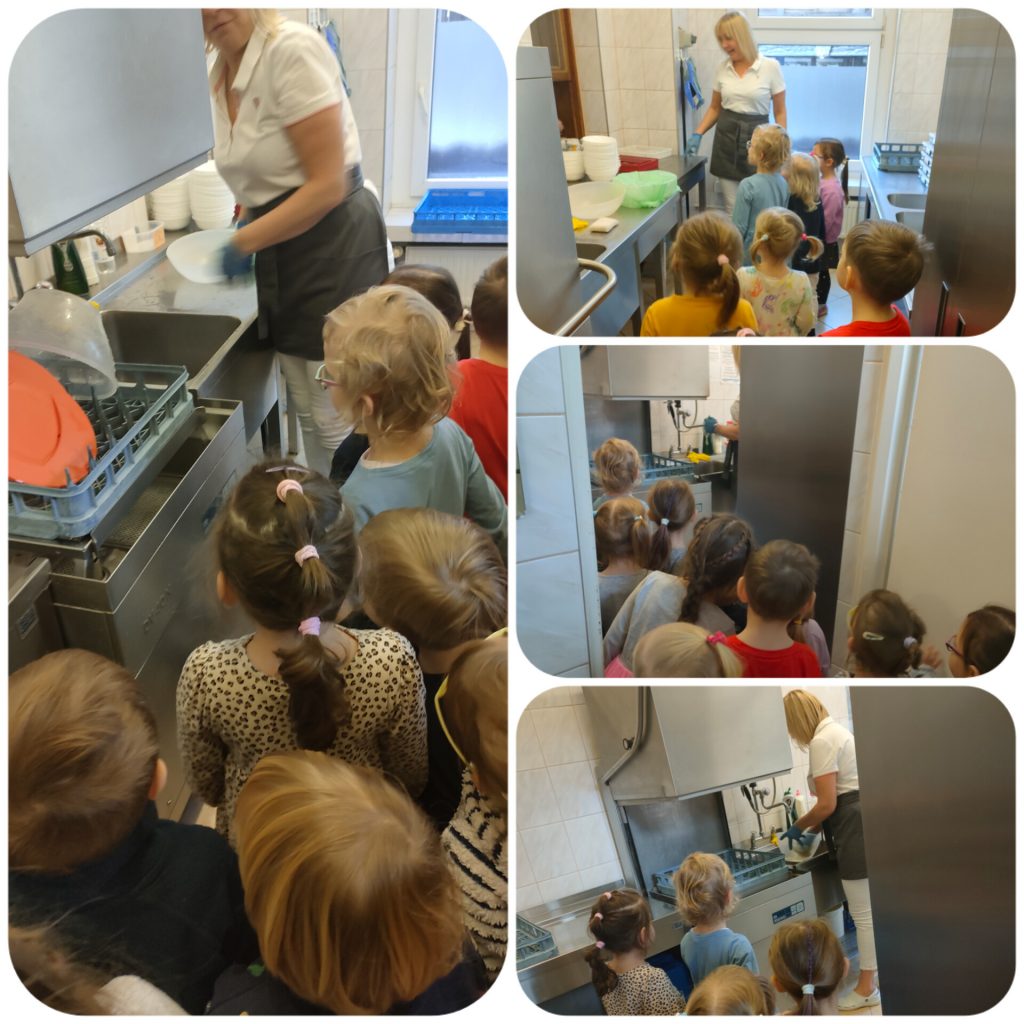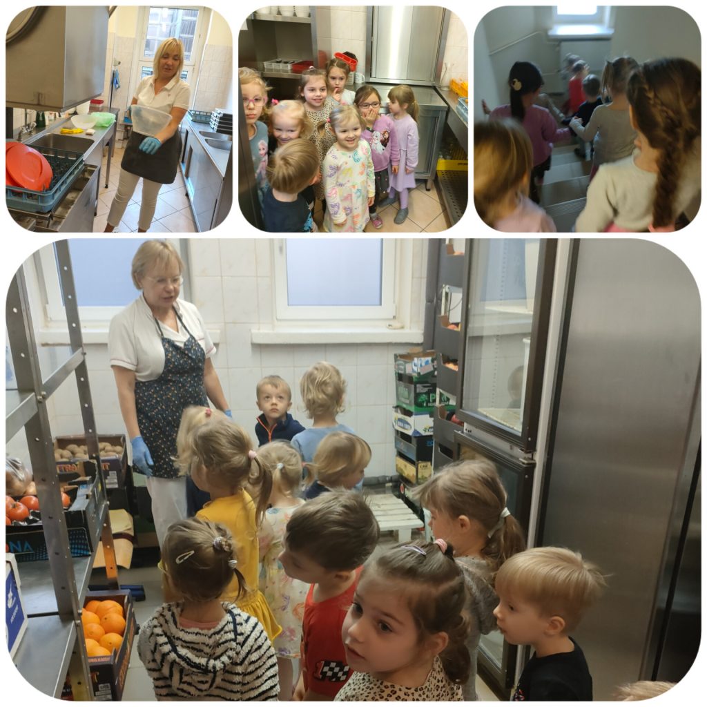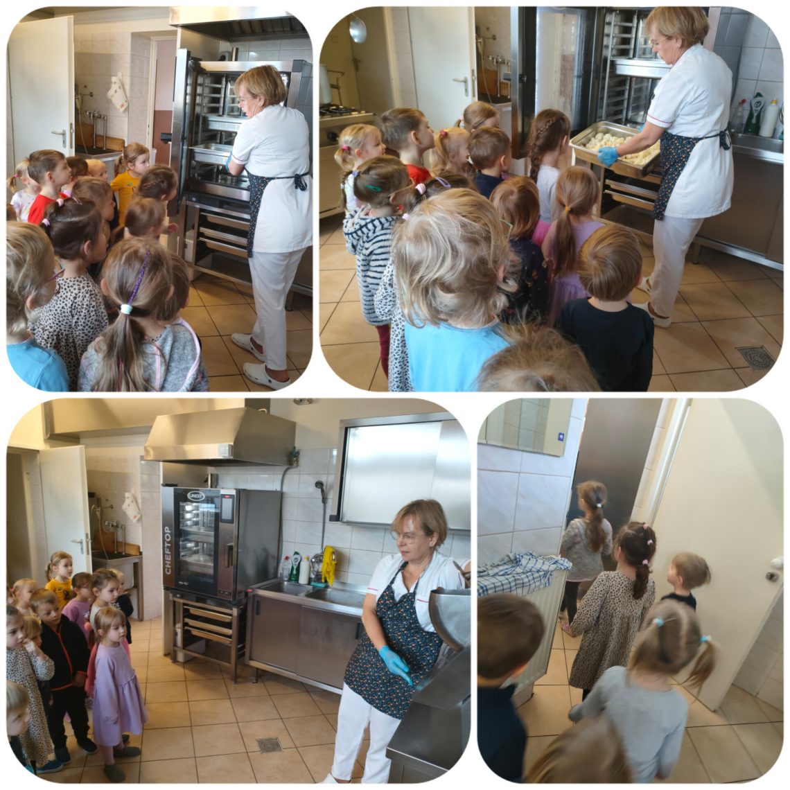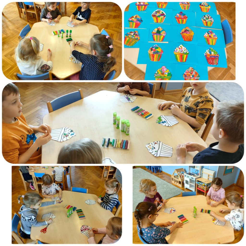 W ramach uczenia się samodzielności w kuchni zrobiliśmy sobie małą wycieczkę do przedszkolnej kuchni. Na własne oczy zobaczyliśmy jak ciężką pracę wykonują panie kucharki. Poznaliśmy sprzęty kuchenne, które są dużo większe niż te w naszych domach, a podczas zajęć plastycznych wykonaliśmy kolorowe babeczki, których niestety nie można zjeść ale cieszą oko na tablicy. 😉