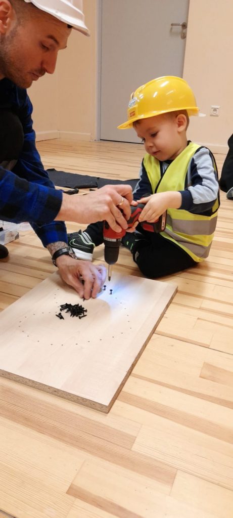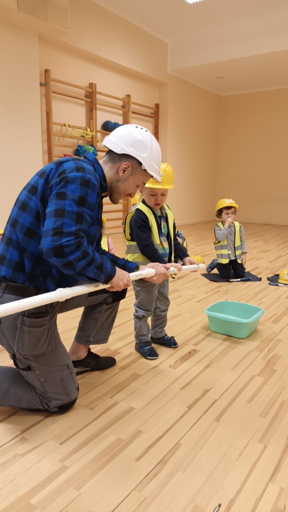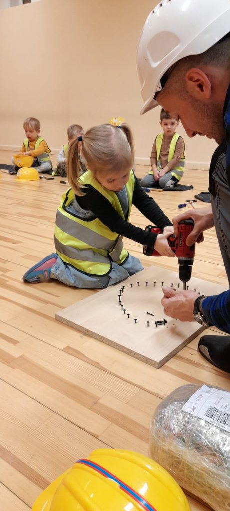W naszej grupie odbyły się ciekawe i rozwijające zajęcia praktyczne z panem Pawłem, w czasie których dzieci miały okazję wkręcać śruby za pomocą śrubokrętu, przybijać gwoździe z użyciem młotka i korzystać z wiertarki. Przedszkolaki świetnie się bawiły i uczyły jednocześnie
