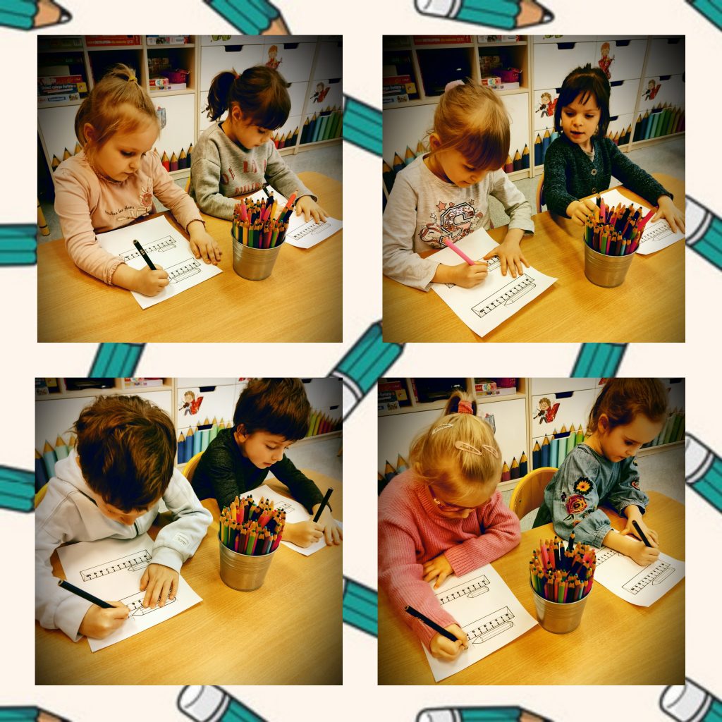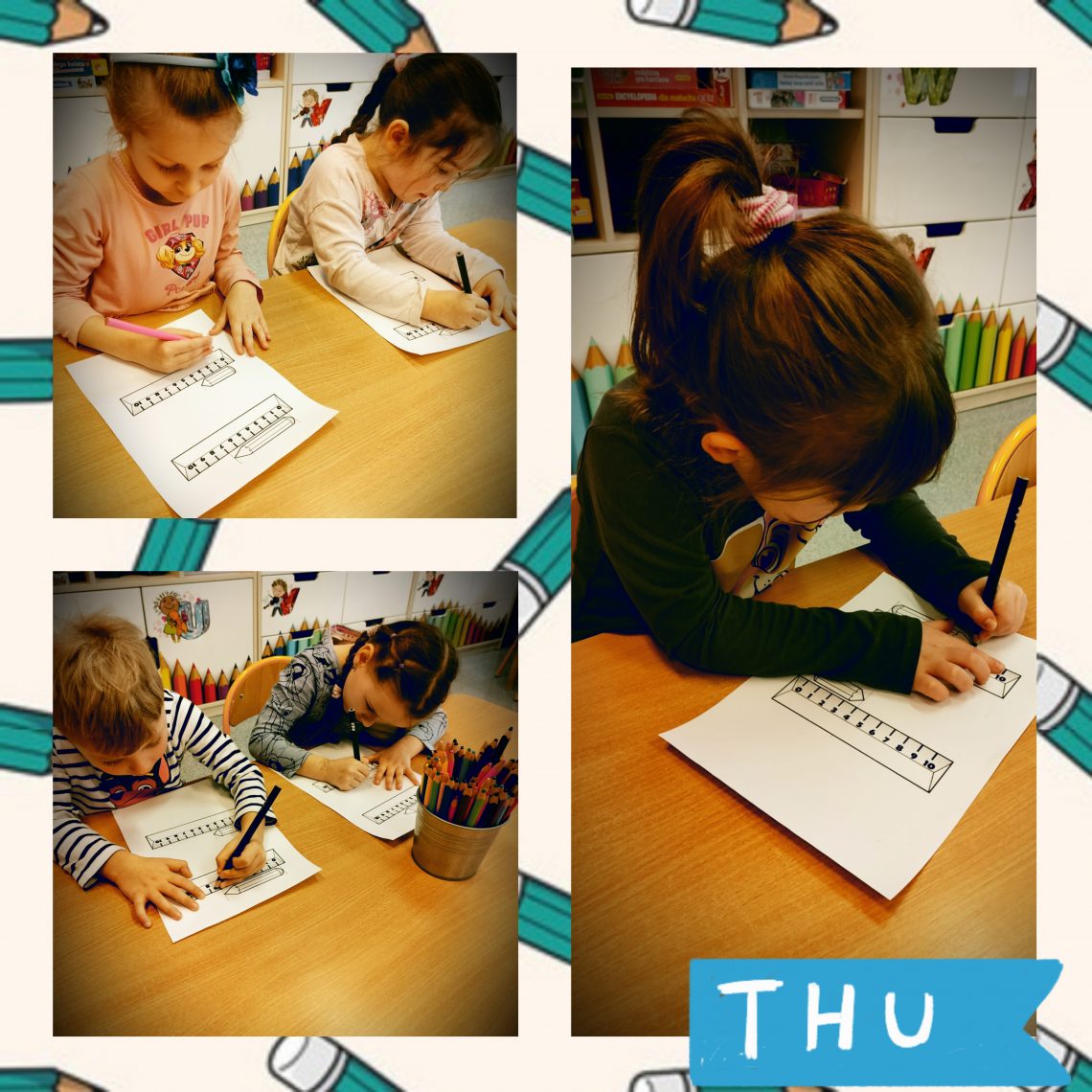 AKTUALNOŚCI, GRUPA LAWENDOWA Bliżej matematyki 27/02/2023 / Przedszkolaki miały za zadanie zmierzyć długość ołówka i za pomocą znaku graficznego (kropek) określić ją.Choć można powiedzieć, że było to zadanie z gwiazdką , to dzieci poradziły sobie świetnie ! Ich determinacja pozwoliła na wykonanie zadania .