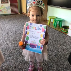 Nowy rok i kolejne urodzinki. W styczniu jako pierwsza i jedyna miała swoje 3 urodziny Maja Bądź zawsze uśmiechnięta, zabawna i odważna Przedszkolaki jak zawsze z wielką radością składały życzenia swojej koleżance
