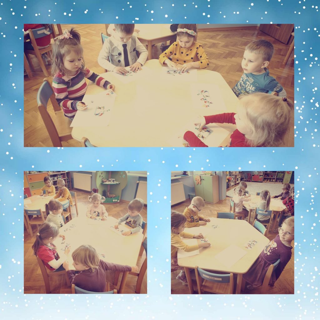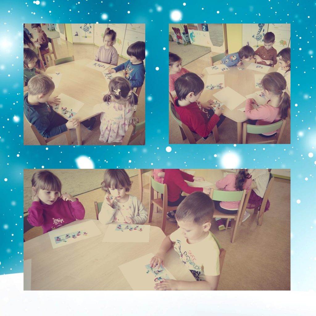 AKTUALNOŚCI, GRUPA NIEBIESKA, GRUPA ZIELONA Zimowe zabawy – kółko plastyczne 08/03/2023 / Na ostatnim kółku plastycznym Przedszkolaki miały za zadanie ułożyć z elementów obrazek. Choć nie było to proste zadanie ze względu na nietypowy kształt puzzli dzieciom udało się ułożyć zimowy obrazek .