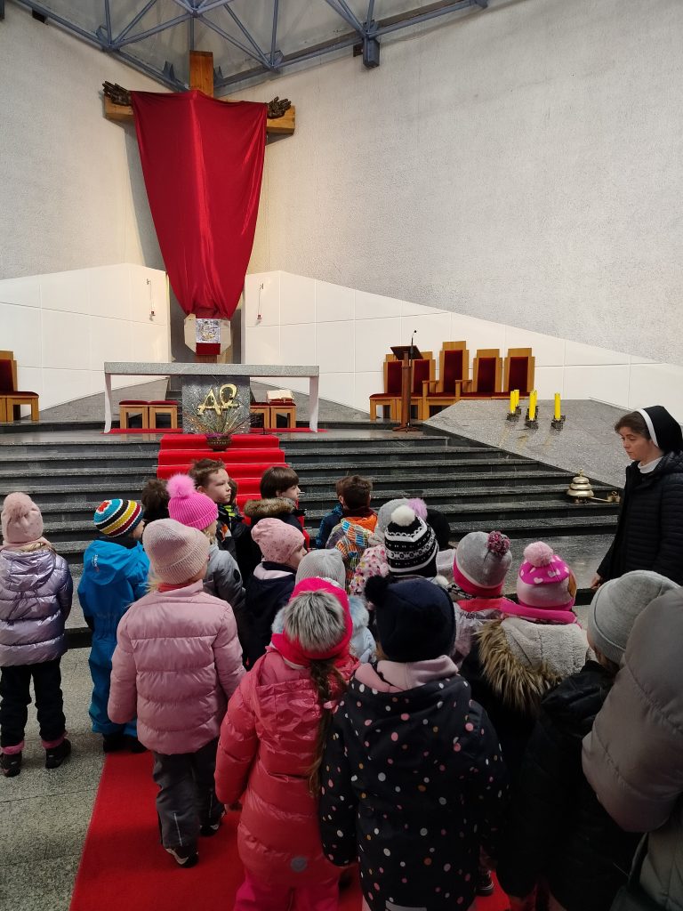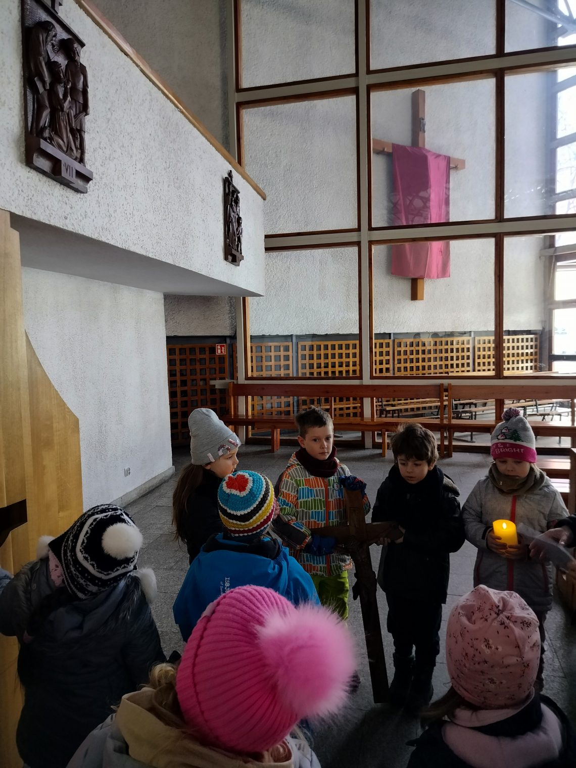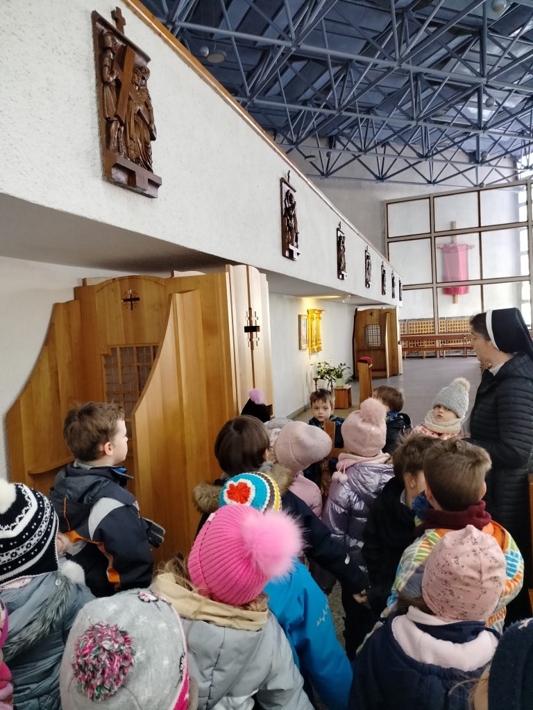 AKTUALNOŚCI, GRUPA LAWENDOWA Droga Krzyżowa 03/04/2023 / Na ostatniej katechezie Siostra Wioletta zabrała nas do kościoła , aby przybliżyć ostatnie chwile z życia Pana Jezusa zawarte w -stu stacjach Drogi Krzyżowej.