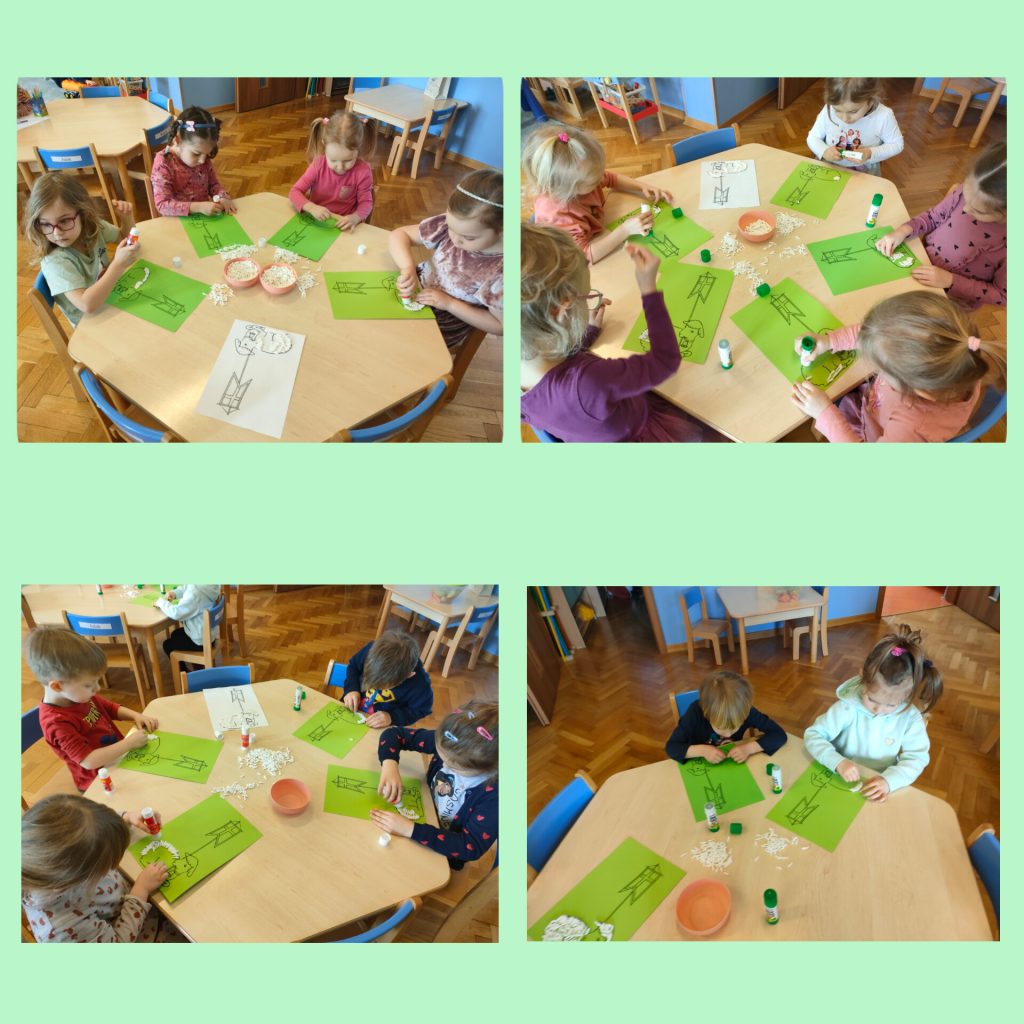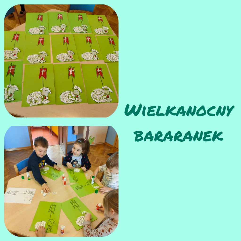 Z okazji zbliżających się Świąt Zmartwychwstania Pańskiego w naszej grupie powstał baranek wielkanocny do wykonania którego użyliśmy patyczków do uszu oraz farby. Baranki wyszły przepięknie 😉