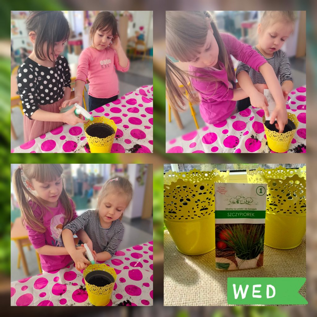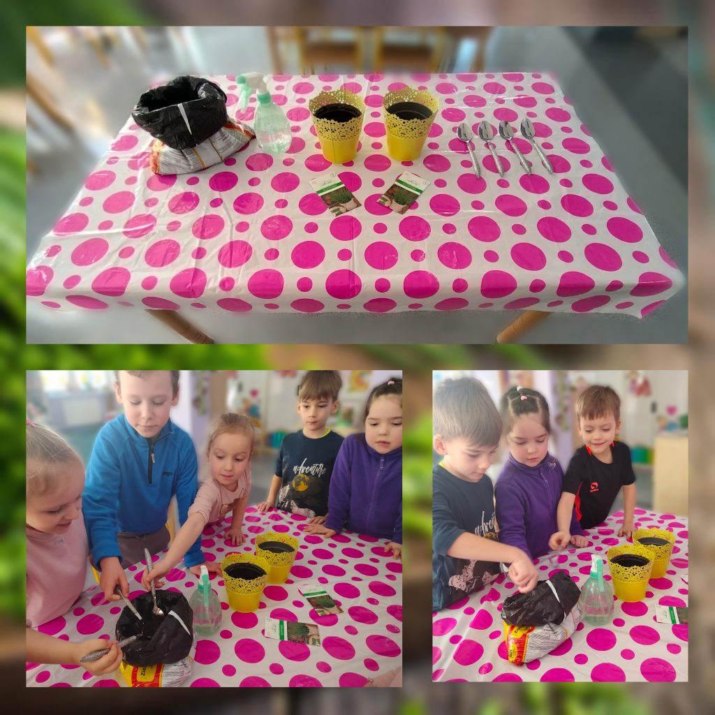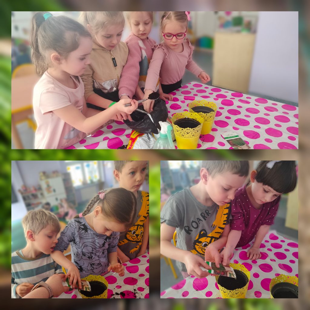 Zadaniem Przedszkolaków 👧👦 było precyzyjne umieszczenie nasion szczypiorku w doniczkach.