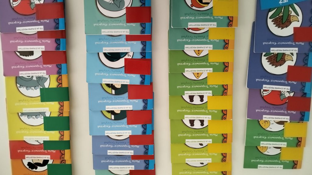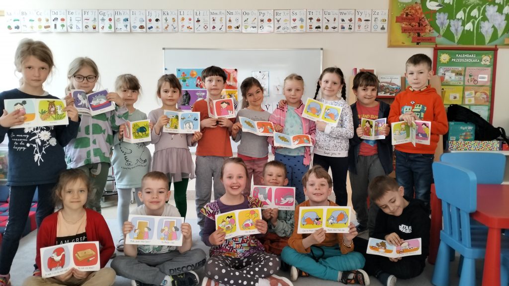 Dzieci z grupy Czerwonej wzięły udział w grupowym wypożyczaniu i czytaniu prostych książeczek. Zaczęły przygodę czytania od najłatwiejszego poziomu. Po przeczytaniu wszystkich książeczek mają poczucie że naprawdę świetnie czytają. Gratulujemy.