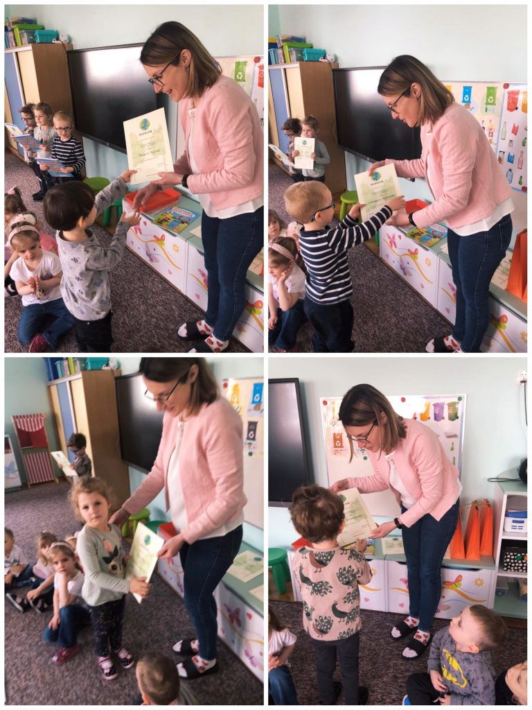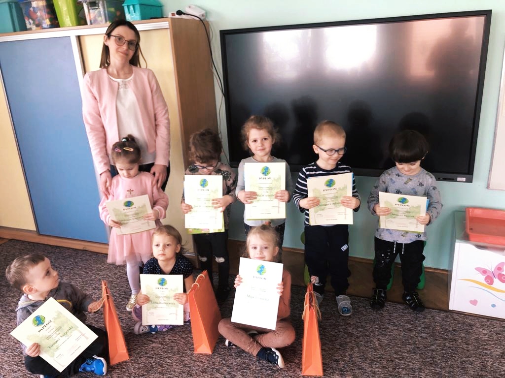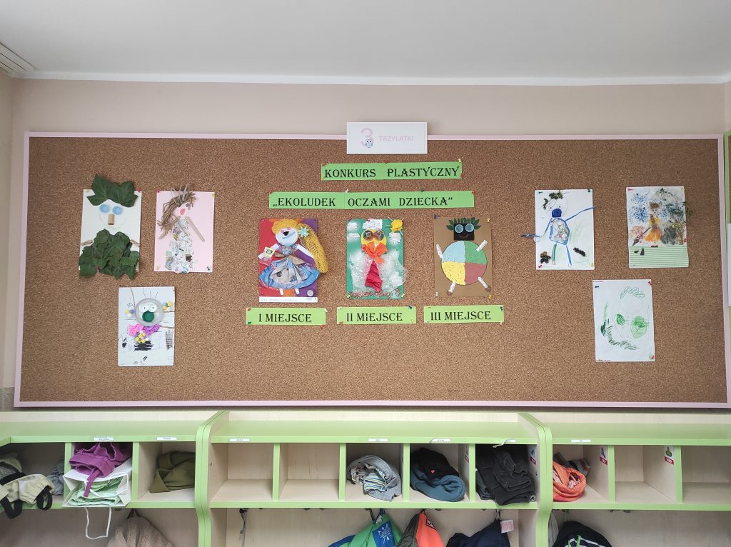 „Ekoludek oczami dziecka”. W konkursie wzięło udział 9 dzieci. Komisja przyznała I miejsce Lidii, II miejsce Tomusiowi oraz III miejsce Mai B. Pozostałe dzieci otrzymały wyróżnienie. Wszystkie prace kosztowały dzieci wiele pracy. Dziękujemy za zaangażowanie i chęć współpracy. Dzieciom życzymy dalszych sukcesów.