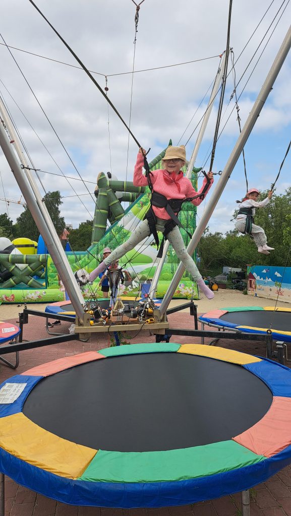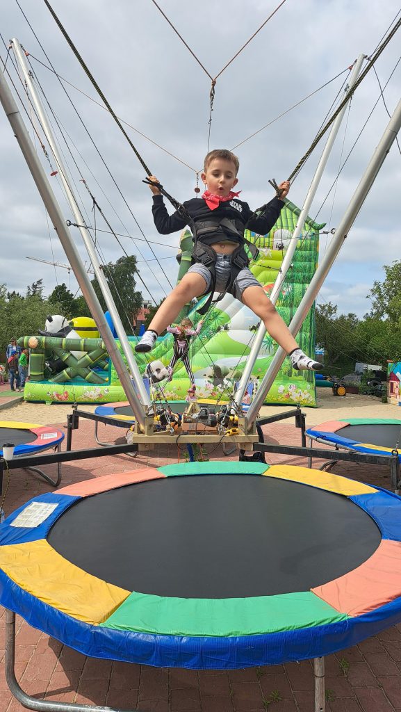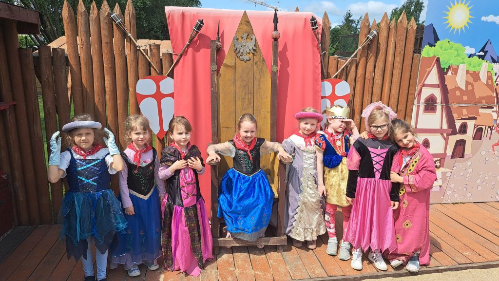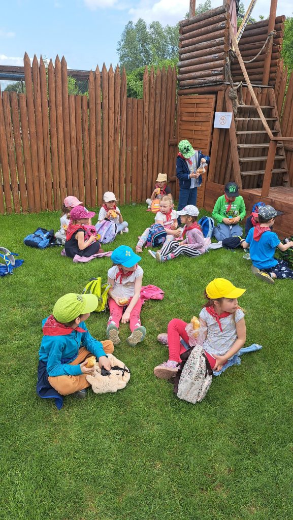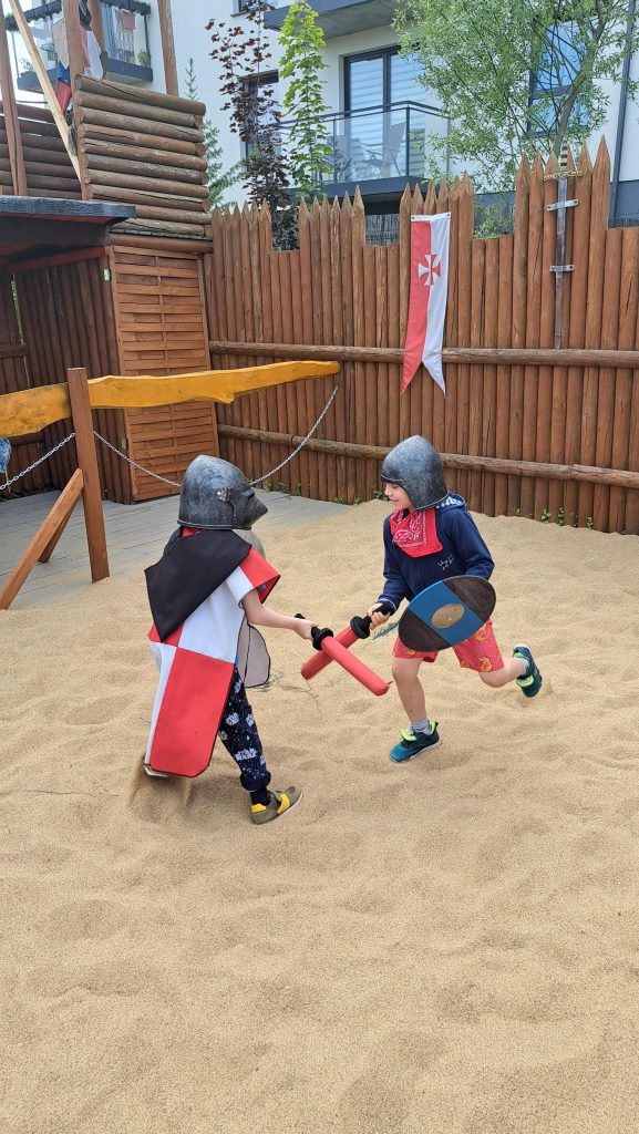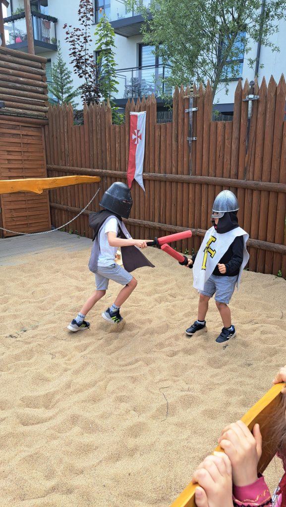 Po zwiedzaniu był czas na piknik, a potem na zabawę. W grodzie rycerskim można było się poczuć jak w tamtych czasach, kiedy damy dworu podziwiały walki swoich rycerzy:)) Potem jeszcze zabawy na trampolinach i zjeżdżalni. Dzieci wracały szczęśliwe i pełne wrażeń:))