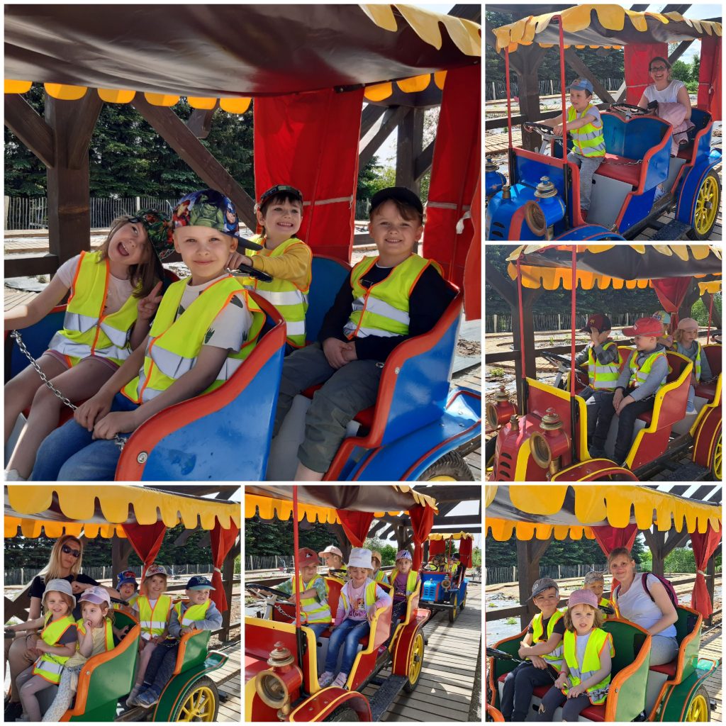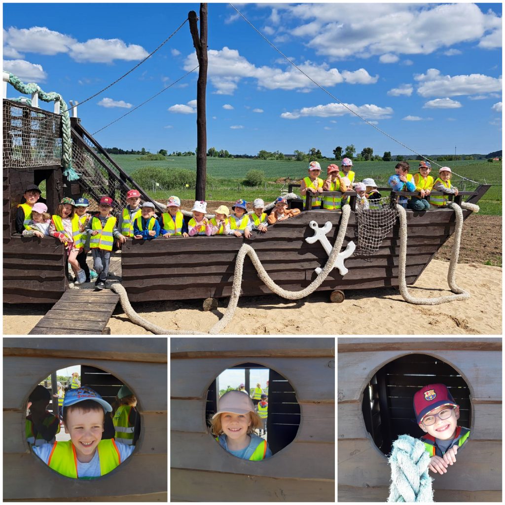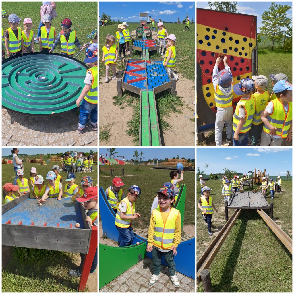 29 maja w wirze różnych przygotowań, korzystając z pięknej pogody grupa zielona wybrała się na wycieczkę do Zagrody Kociewskiej. Na miejscu czekało nas bardzo dużo atrakcji, m.in. Retro-Autka, Mini-Golf, Duże – Klocki, Ścieszka -Zmysłów, Labirynty, Skocza-Górka, Małpi – Gaj, Kopalnia Złota oraz Gry Edukacyjne. Jadą autokarem śpiewaliśmy piosenki, było bardzo wesoło. Zagroda Kociewska jest niezwykłym i interesującym miejscem znajdującym się w pięknej wsi kociewskiej Godziszewo. Dzieci