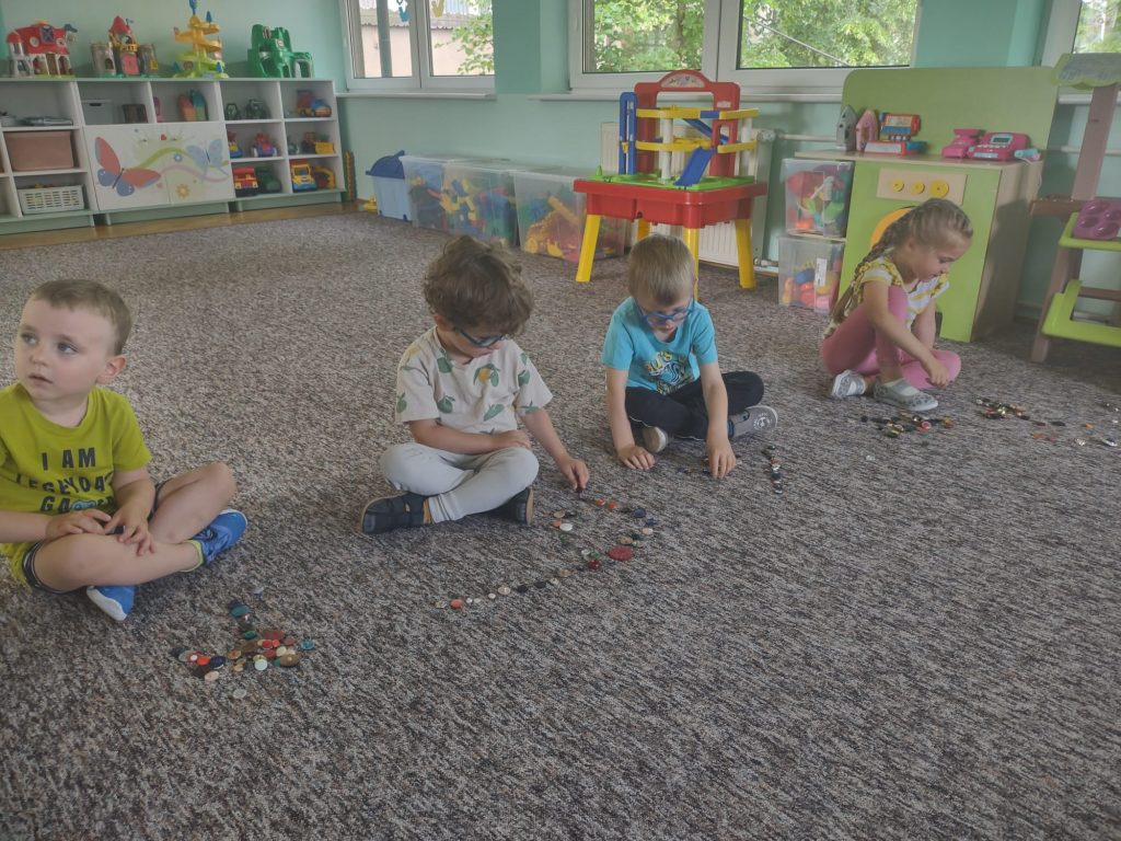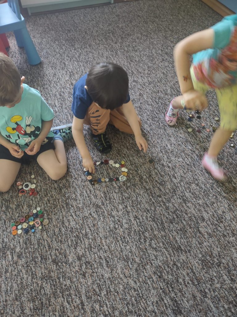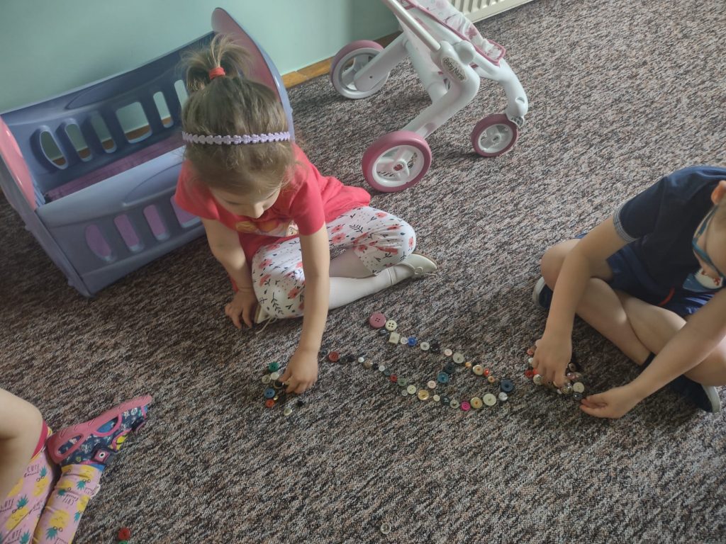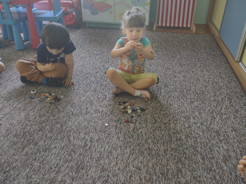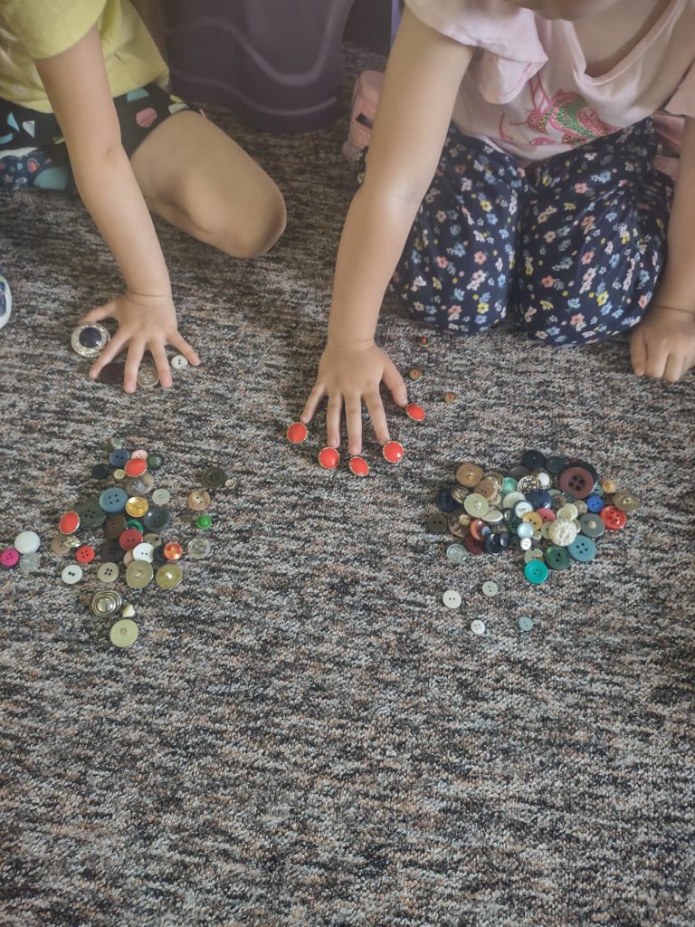 AKTUALNOŚCI, GRUPA PASTELOWA Zabawy z guzikami w grupie Pastelowej. 29/06/2023 / Utrwalenie kolorów, porównywanie wielkości przeliczanie w zakresie 5. Ćwiczenia motoryki małej ,rozwijanie wyobraźni i pomysłowości.