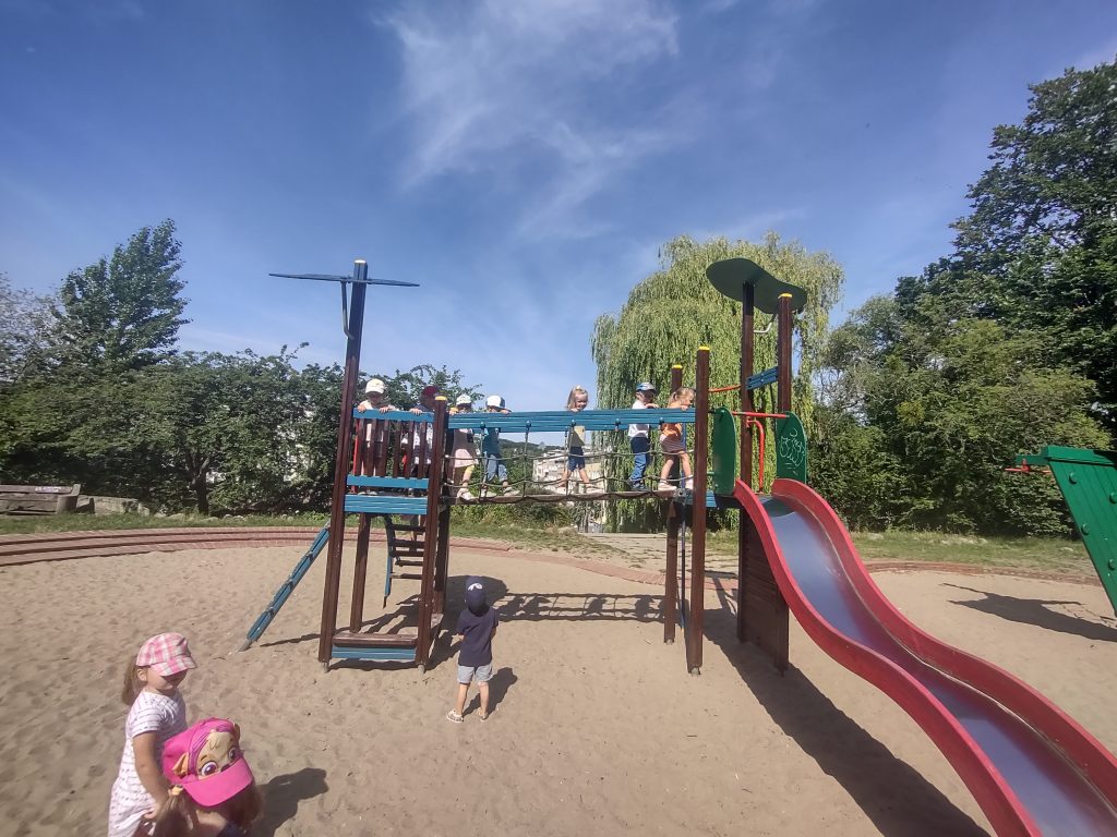 Zwiedzamy okolicę i poznajemy ciekawe miejsca.10lipca wybraliśmy się na Kamienną Górę.Podczas wędrówki zatrzymaliśmy się na krótki odpoczynek na placu zabaw.Następnym etapem wyprawy był amfiteatr na drugim poziomie Kamiennej Góry.Tutaj śpiewaliśmy i tańczyliśmy po czym udaliśmy się na sam szczyt.Podziwialismy panoramę Gdyni,statki oraz jachty na morzu. Na koniec zjechaliśmy kolejką górską.Byl to dzień pełen niespodzianek.