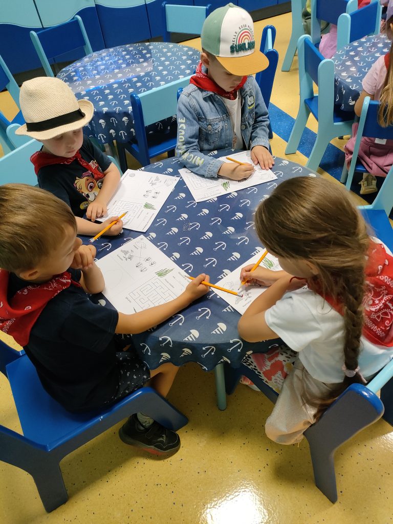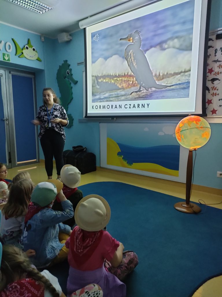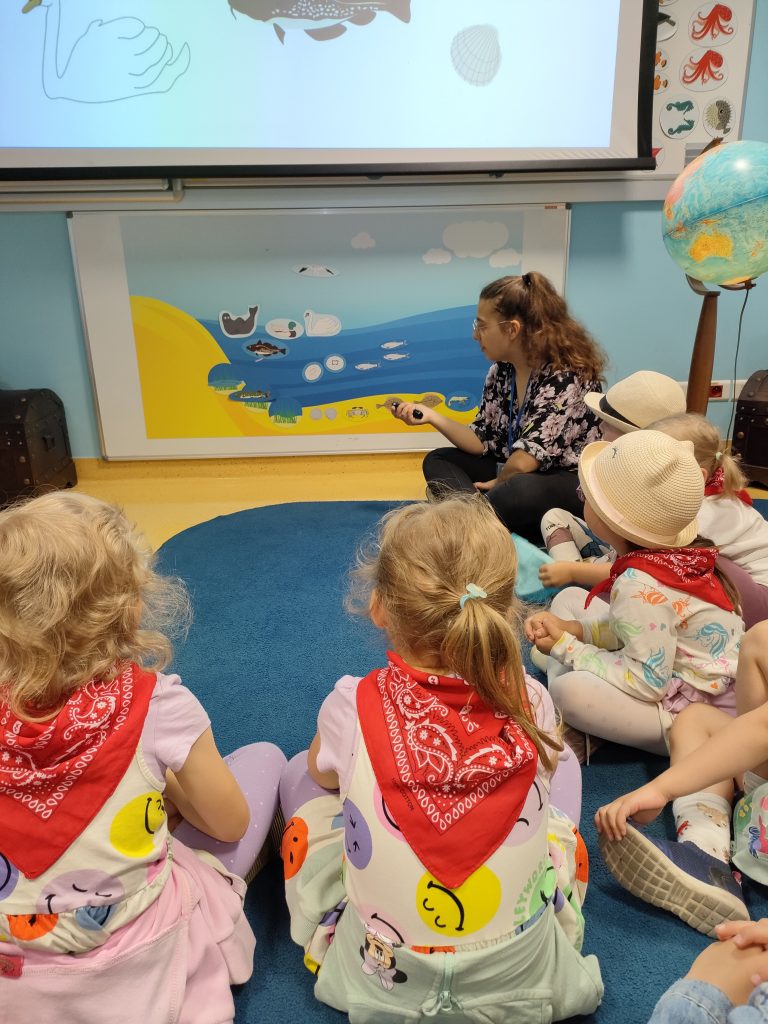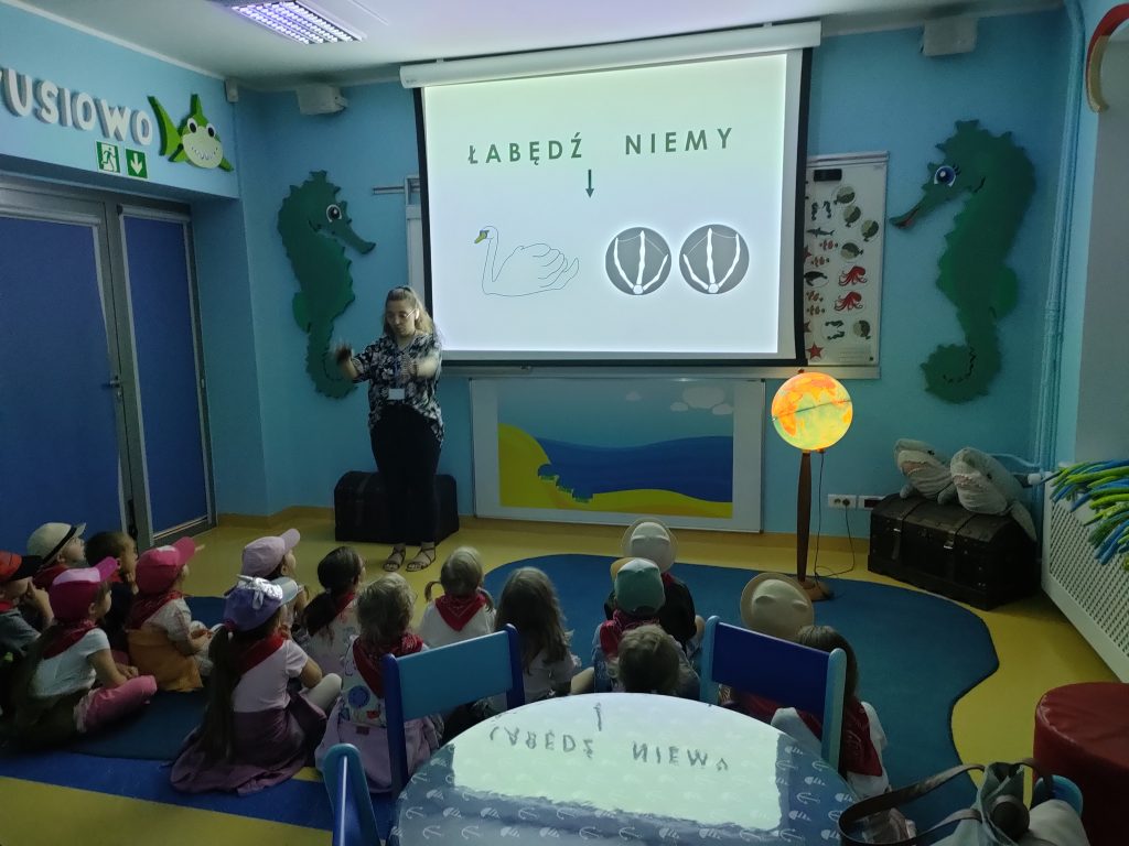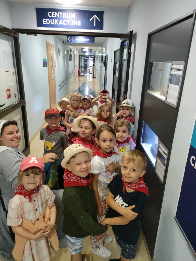 Grupa niebieska w czerwcu odwiedziła gdyńskie akwarium. Podczas zajęć edukacyjnych poznała mieszkańców morza bałtyckiego a także nauczyła się rozpoznawać po śladach spacerujące po plaży ptaki. Po zajęciach dzieci z radością przystąpiły do zwiedzania akwarium. Najbardziej poszukiwane przez nie były meduzy oraz znana z bajki „Rybka Nemo”.