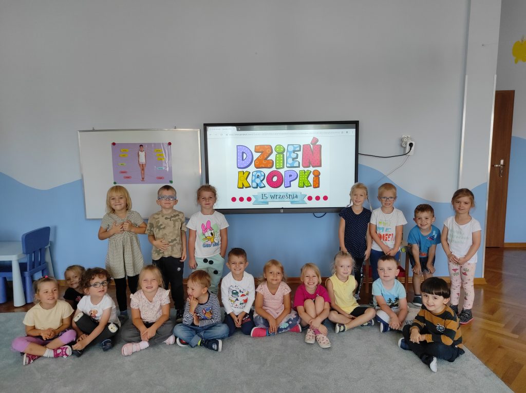 15 września w kalendarzu świąt nietypowych obchodzimy ” Dzień Kropki”. Obchodzenie tego dnia miało na celu wzbudzenie u dzieci kreatywności, pomysłowości, a także zachęcenia do działania.  Dzień Kropki jest to dzień odwagi i zabawy. Na zajęciach poznaliśmy genezę tego święta. Podczas całego dnia towarzyszyła nam piosenka „Każdy z nas jest inny”. Dobrze wiemy, że tylko wtedy nigdy nie będzie nudno.