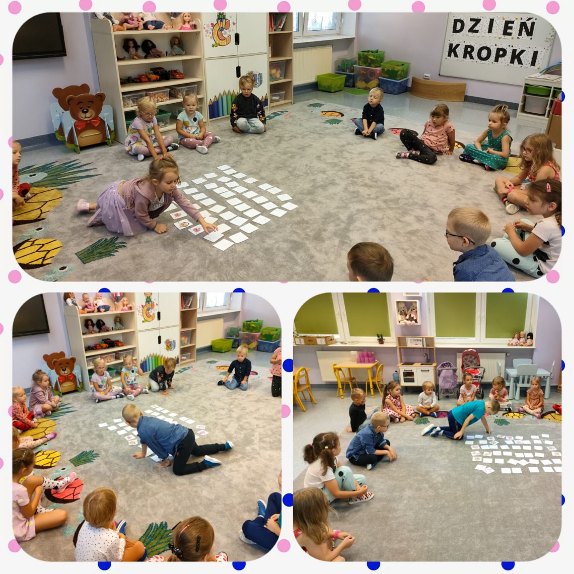 AKTUALNOŚCI, GRUPA LAWENDOWA Dzień Kropki 02/10/2023 / 15 września obchodziliśmy Dzień kropki. W tym dniu dzieci miały ubrania w kropeczki, a podczas zajęć graliśmy w memory kropeczkowe, tańczyliśmy kropkowy taniec oraz wykonaliśmy pracę plastyczną malując farbami przy użyciu paluszków.