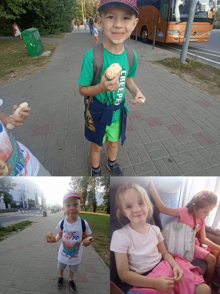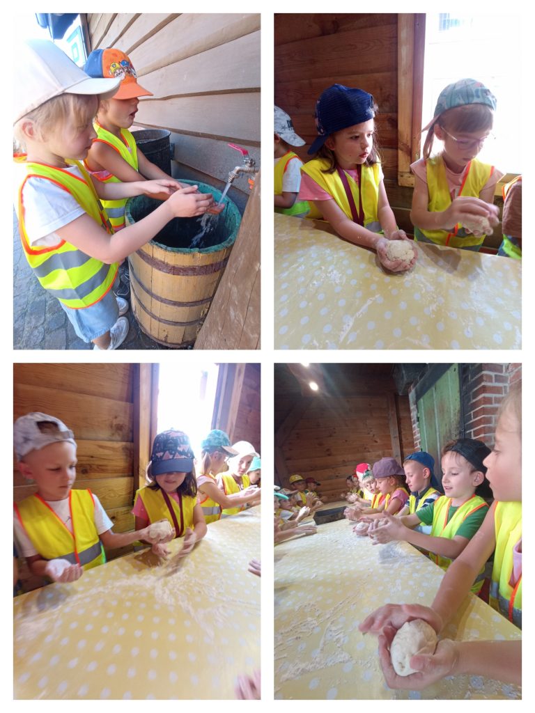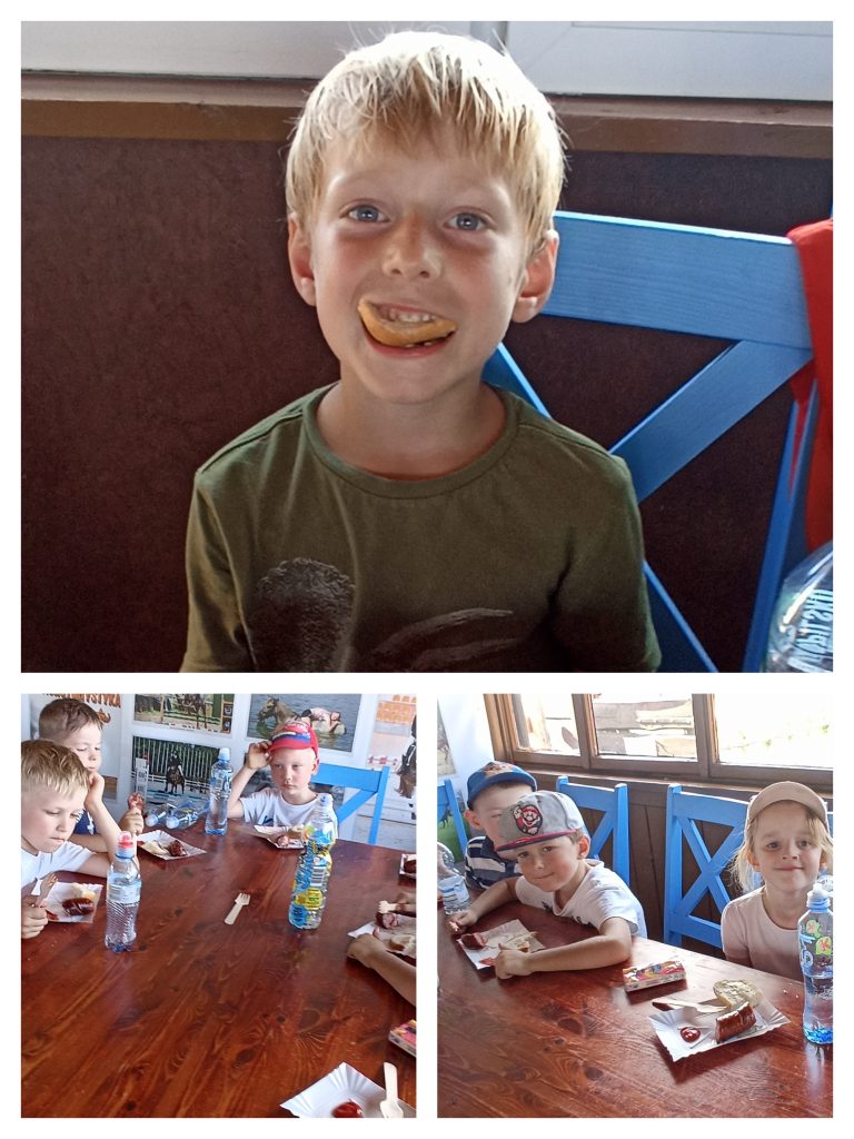 Czerwona Zerówka wybrała się w piękny wrześniowy dzień na wycieczkę. Podróżowaliśmy autokarem do celu. Na miejscu bawiliśmy się w piekarza formując swoje bułeczki, wcześniej Pani nam opowiadała co zrobić czy by wyszły nam najlepsze. Wykonaliśmy też ozdoby z masy solnej. Wspaniałą atrakcją był przejazd wozem drabiniastym. Odwiedziliśmy też mieszające tam zwierzątka: kury, koguty, króliki, kozy i był też piękny paw. Pani zabrała nas do stajni gdzie podziwialiśmy piękne konie, oraz mogliśmy zobaczyć osprzęt potrzebny do uprawiania jazdy konnej oraz dbania o konie. Nie zabrakło zabawy na placu zabaw i pysznego obiadu a były to kiełbaski z grilla. Wycieczka uda słysząc: „to kolejny najlepszy dzień w przedszkolu”.